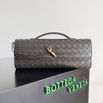 This is a replica BOTTEGA VENETA Andiamo Clutch Bag in Fondant. This intrecciato leather top handle clutch comes with metallic knot closure, including s,Size: Clutch,Dimensions: ,Signature knot closure,Signature intrecciato woven leather detailing
