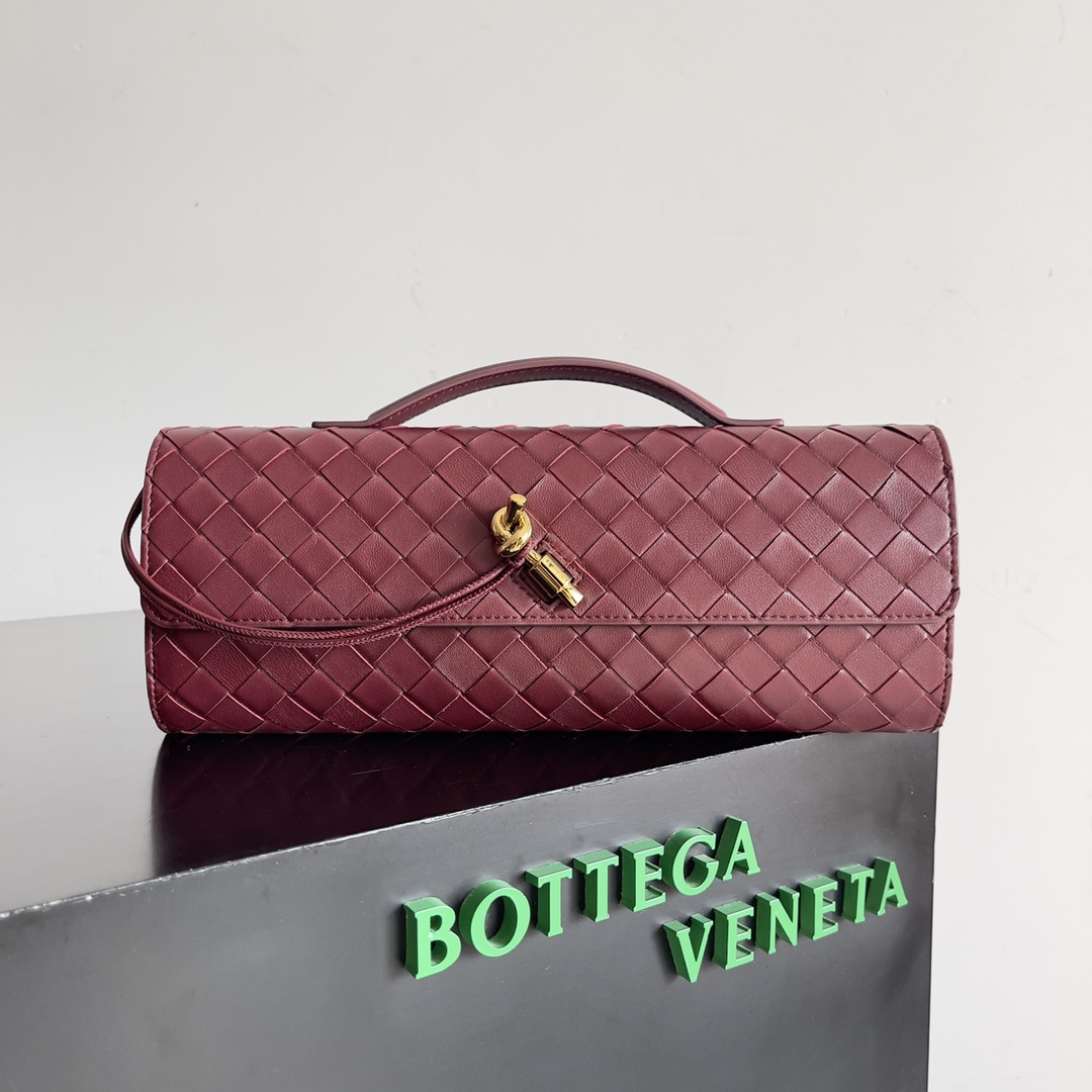 This is a replica BOTTEGA VENETA Andiamo Clutch Bag in Barolo. This intrecciato leather top handle clutch comes with metallic knot closure, including s,Size: Clutch,Dimensions: ,Signature knot closure,Signature intrecciato woven leather detailing
