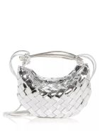 ,Size: Baby,Sculptural metallic top handle, 2″ ,Dimensions: 8″W x 1″D x 4.75″H,Magnetic closure,Signature intrecciato woven leather detailing