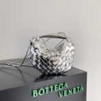 This is a replica BOTTEGA VENETA Sardine Intrecciato Leather Baby Bag in Silver. This ‘Sardine’ shoulder bag is braided from strips of supple calf leather and hangs from a sculptural gold-tone top handle.,