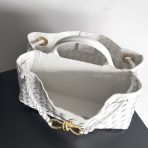 This is a replica BOTTEGA VENETA East-West Andiamo in White. This East-West Intrecciato leather top handle bag with sliding cross-body strap, includingCompartmented interior with one zippered pocket, two open pockets. Bag leather is l,Size: East-west,Dimensions: ,Handle drop: 3.1” in,Strap drop: 21.8” in,Magnetic closure,Signature intrecciato woven leather detailing