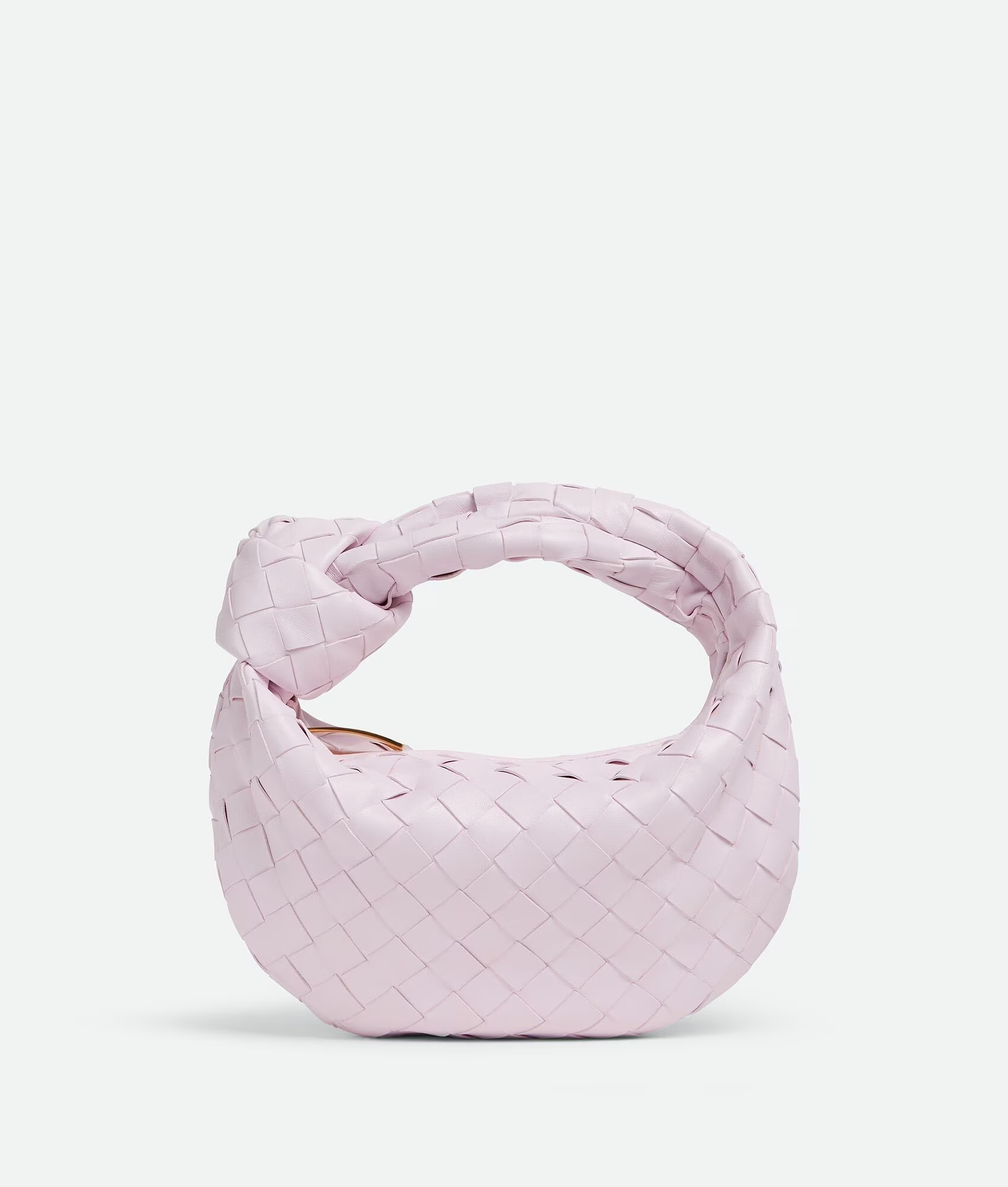 This is a replica BOTTEGA VENETA Mini Jodie in Bliss washed. This Top handle bag comes with rounded shape and signature knot in supple Intrecciato leather.,Size: Mini,Dimensions: ,Handle drop: 3.9” in,Single compartment,Zipper closure,Signature intrecciato woven leather detailing