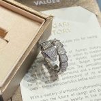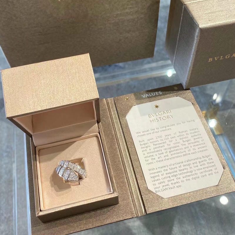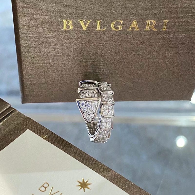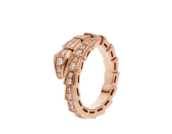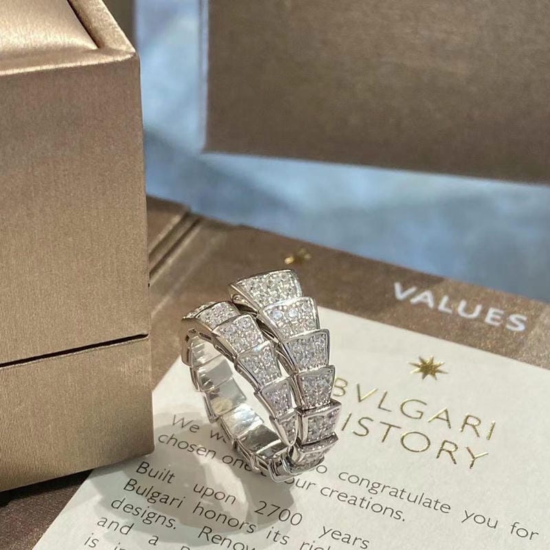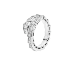 NoneWith its signature blend of pure aesthetics, enveloping shapes and charismatic flair, the Serpenti Viper 18 kt white gold ring with full pavu00efu00bf?diamonds is an essential interpretation of Bvlgariu00efu00bfu00bds icon of endless metamorphosis. Capturing the powerful and ever-evolving nature of the mythical serpent, the magnetic jewellery creation inspires us to embrace change as a source of strength and self-confidence. Easy to mix and match, the ring offers endless styling options, embodying the collectionu00efu00bfu00bds versatile spirit.