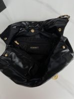This is a replica CHANEL 22 Handbag Shiny Calfskin & Gold-Tone Metal in Black. From the Cruise 2025 Collection by Virginie Viard, this 22 bag comes in shiny calfskin, Size