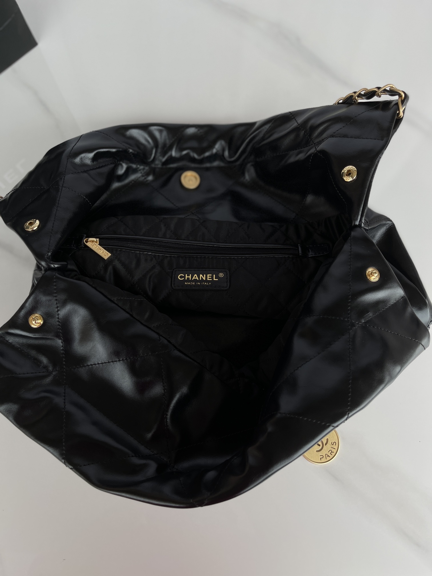 CHANEL 22 Handbag Shiny Calfskin & Gold-Tone Metal