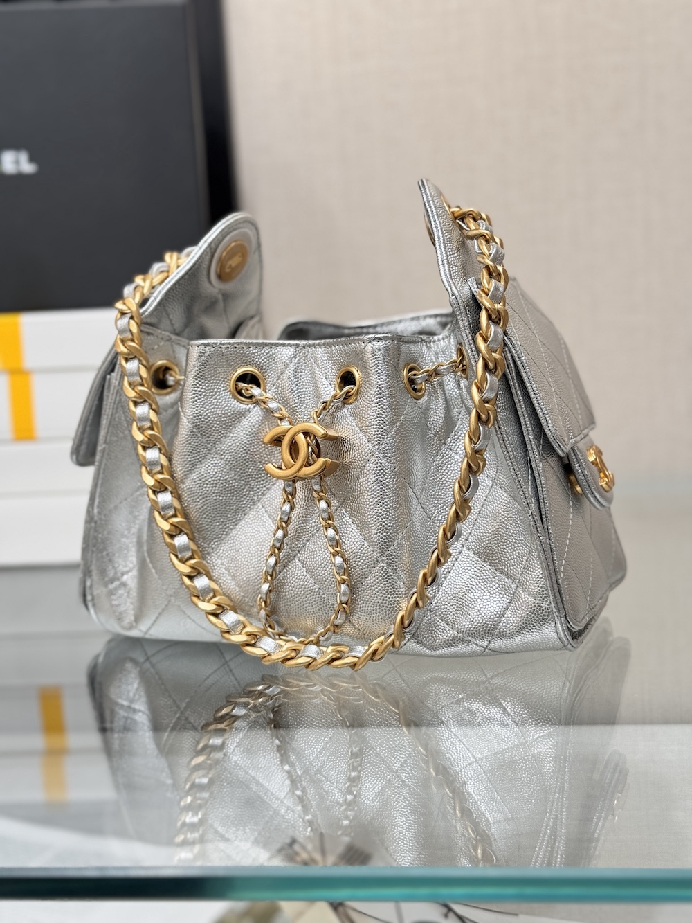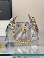 This is a replica CHANEL Cruise 2025/26 25 Mini Handbag in   .  Material: Metallic Grained Calfskin & Silver-Tone Metal