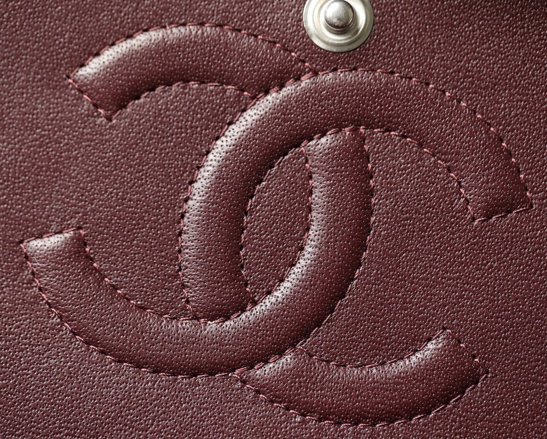 This is a replica CHANEL Classic 11.12 Flap Bag Lambskin & Silver-Tone Metal Black. This classic double flap bag comes in black grained calfskin featuring gold-tone hardware. Open pocket on the back. Closes with classic CC-turn-lock on the front. Zipper pocket inside the flap. Outside pocket on the front under the flap. Lined in burgundy leather with two open and a lipstick pocket against the back. CC stitching on the inside flap.  Size