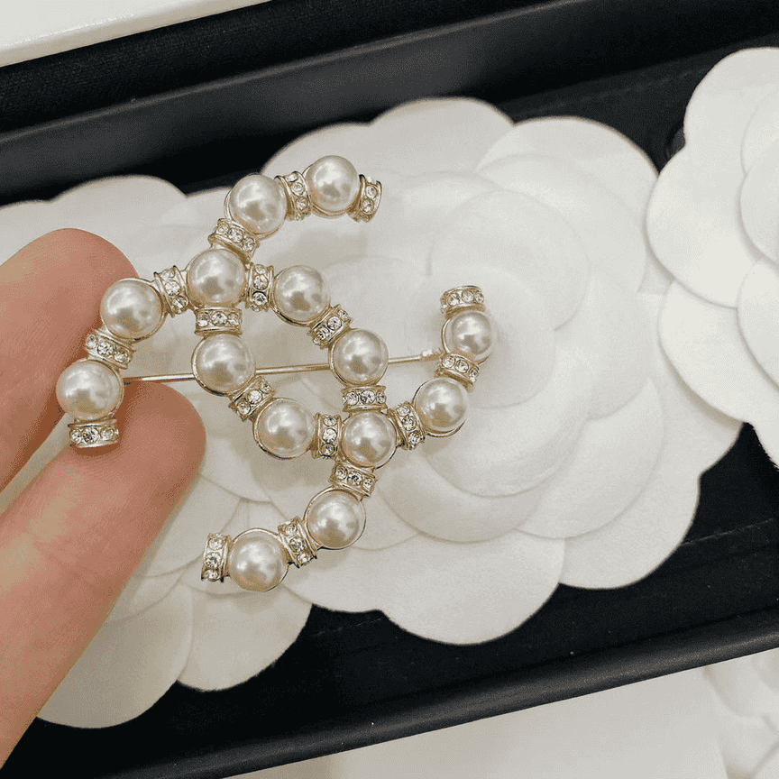 Chanel Double C Pearl Brooch