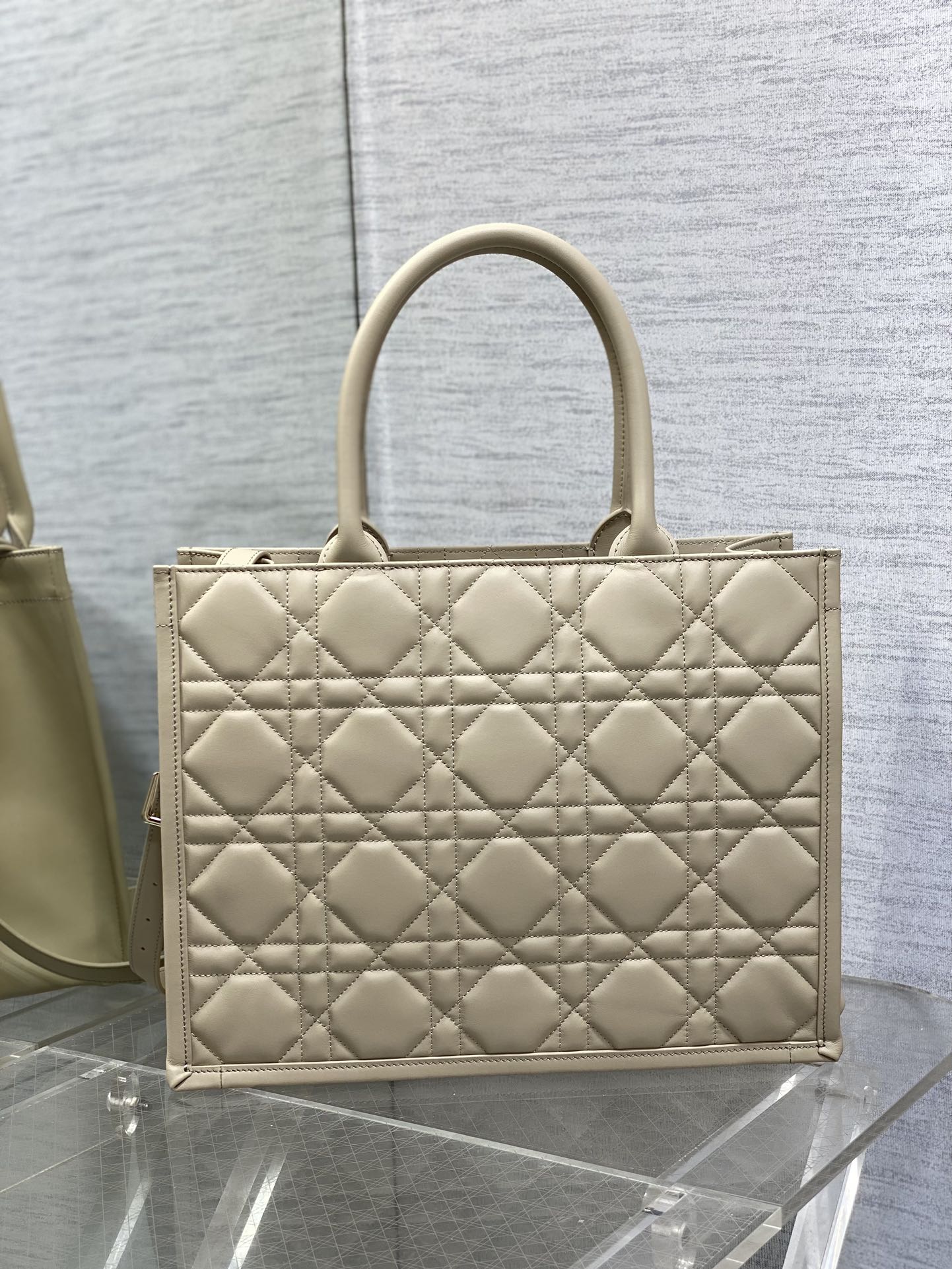 This is a replica CHRISTIAN DIOR Medium Dior Book Tote in Warm Taupe Macrocannage Calfskin. Main composition of t, calfskin. ,