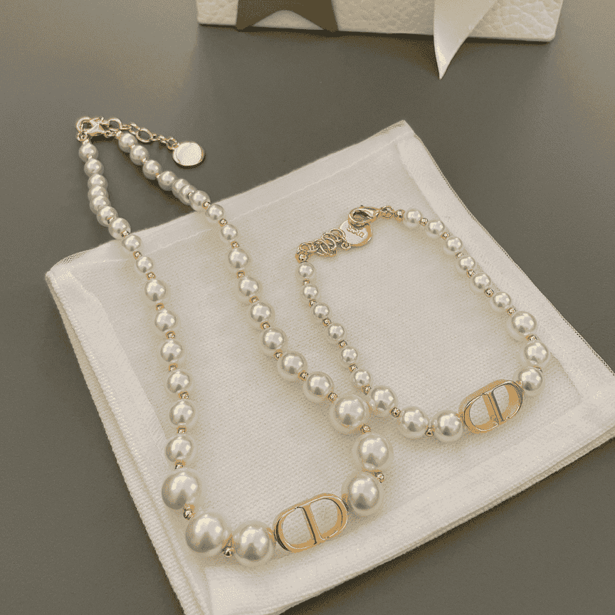 Christian Dior pearl necklace & Bracelets (Perfect Replica)