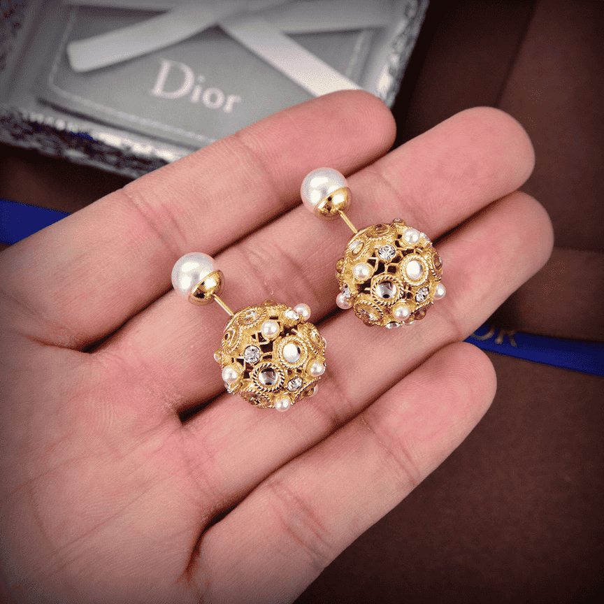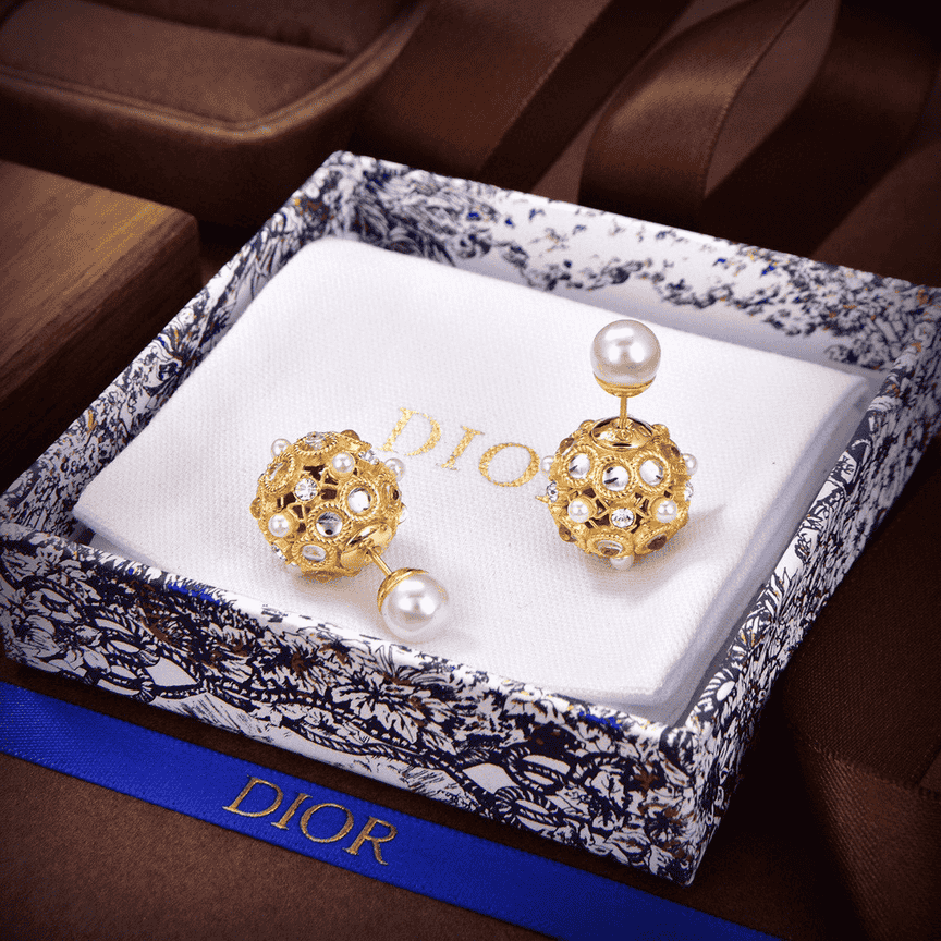 Christian Dior Round Diamond&Pearl Earrings