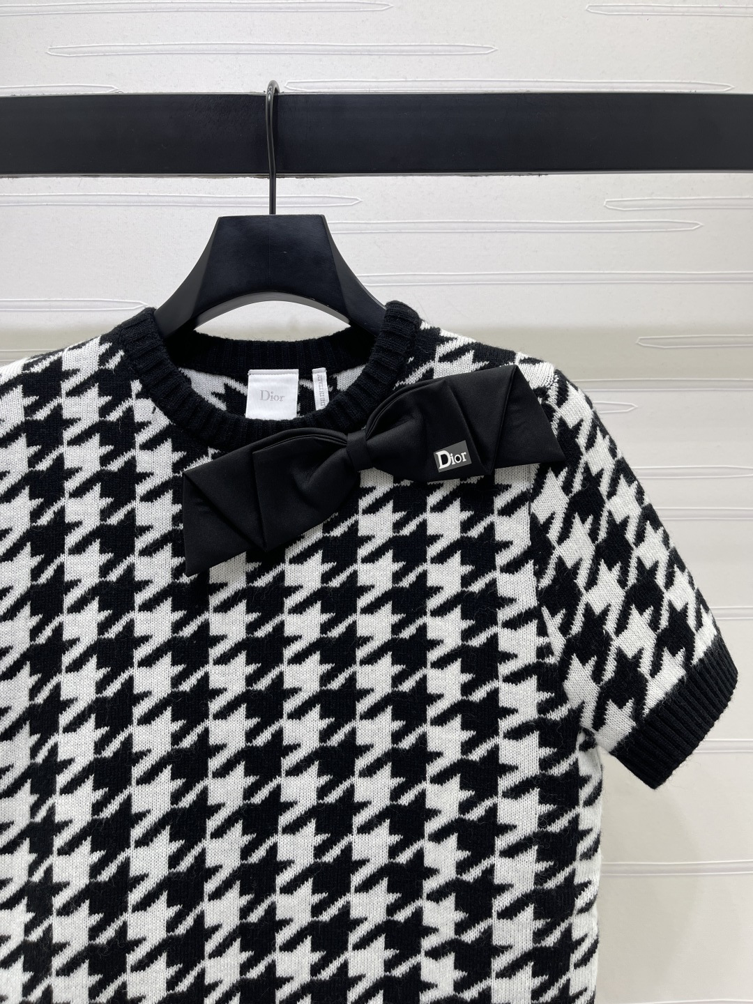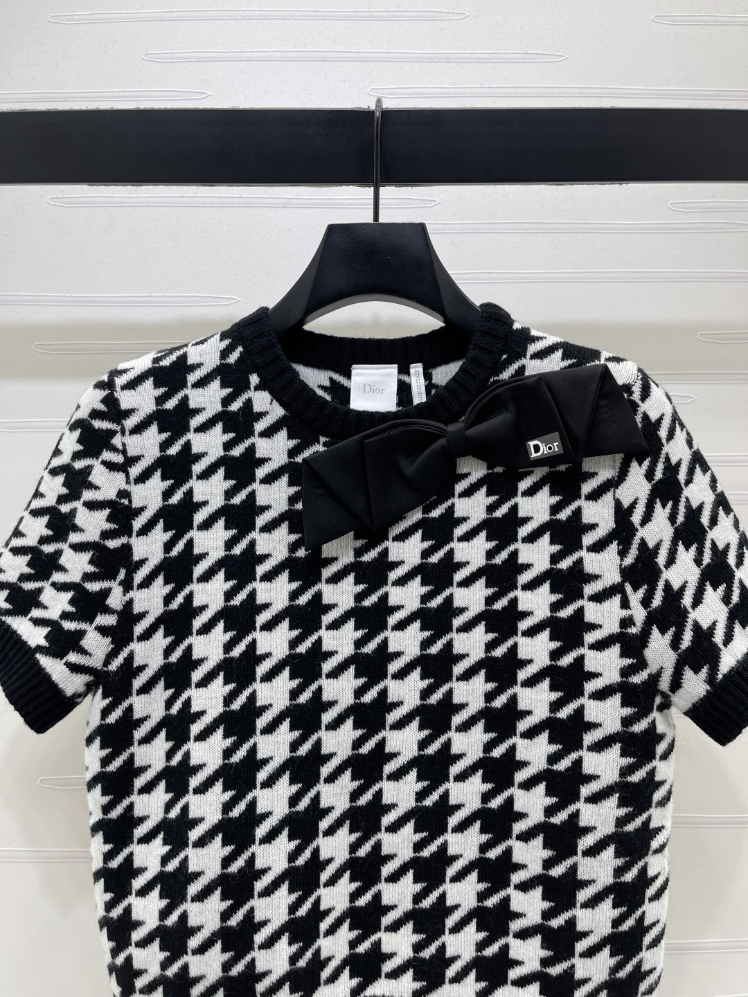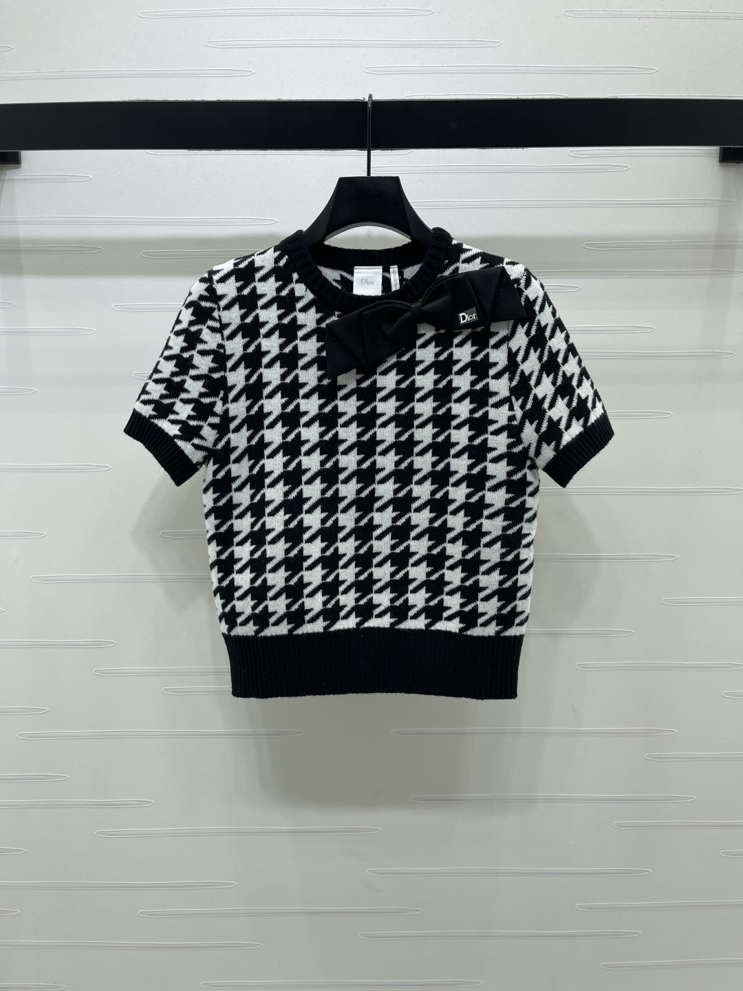 Dio*r houndstooth bow knit short sleeve top A706B400C