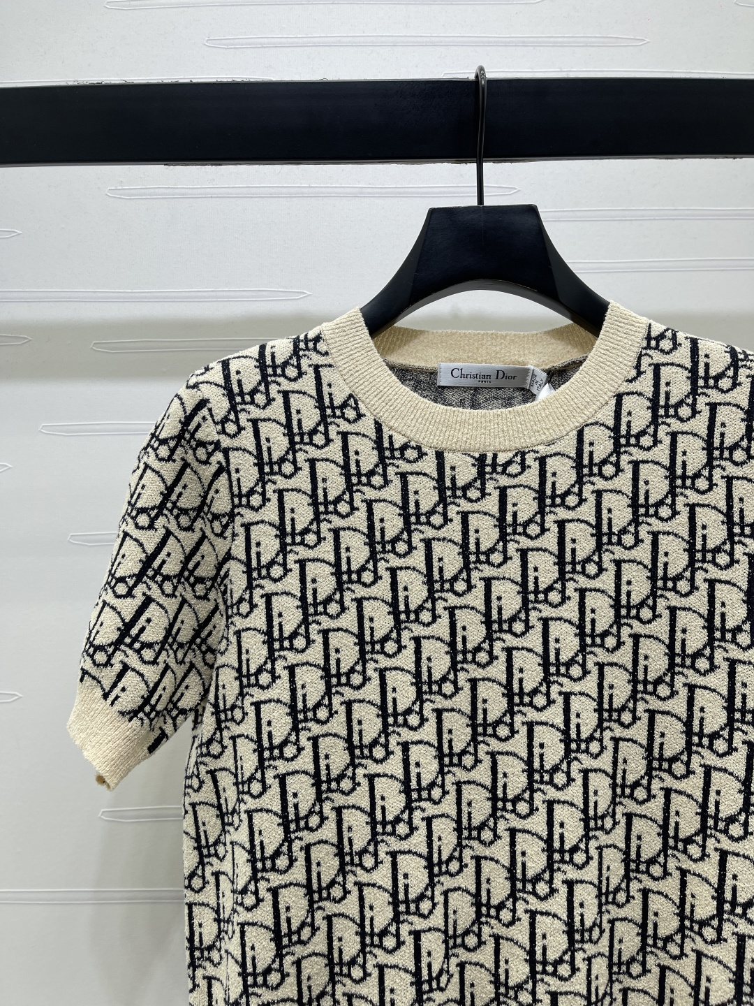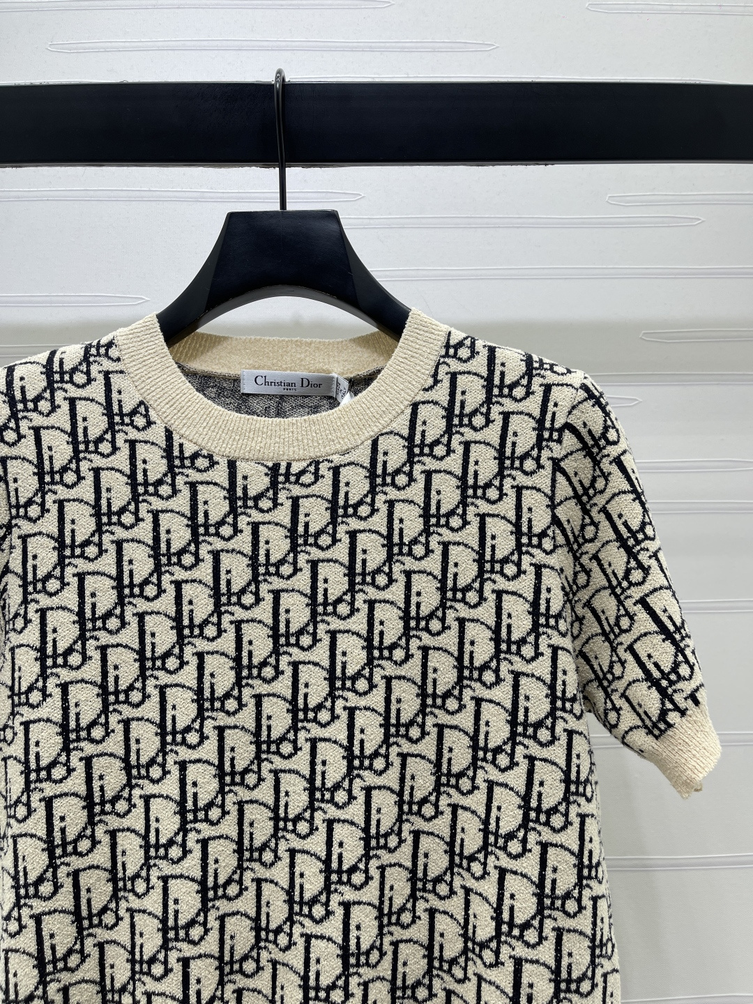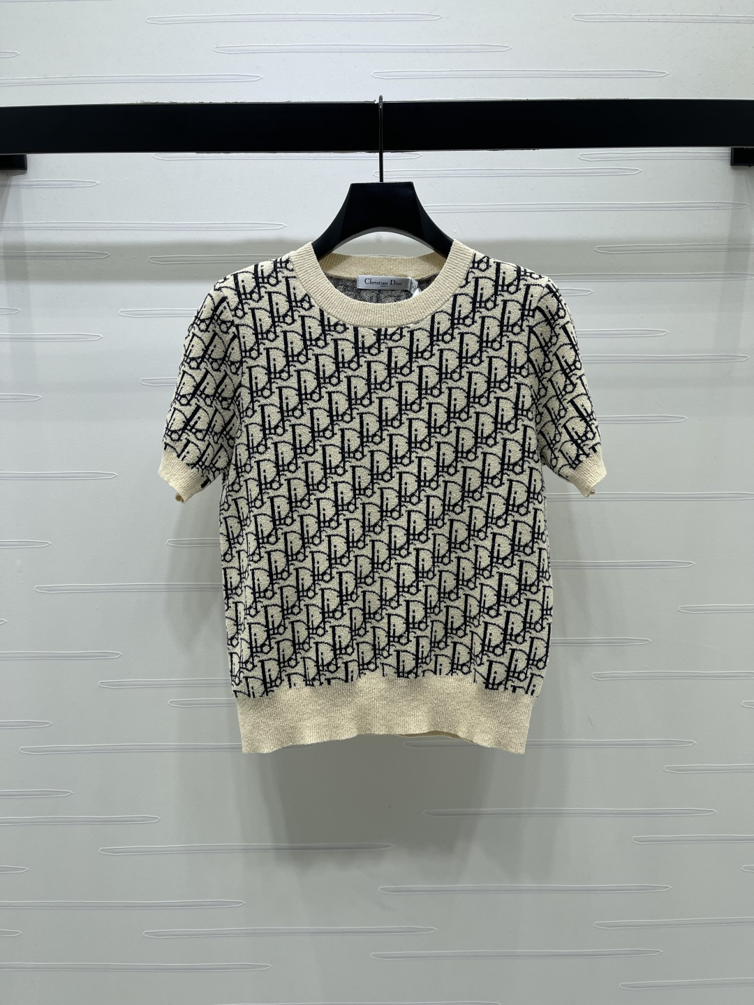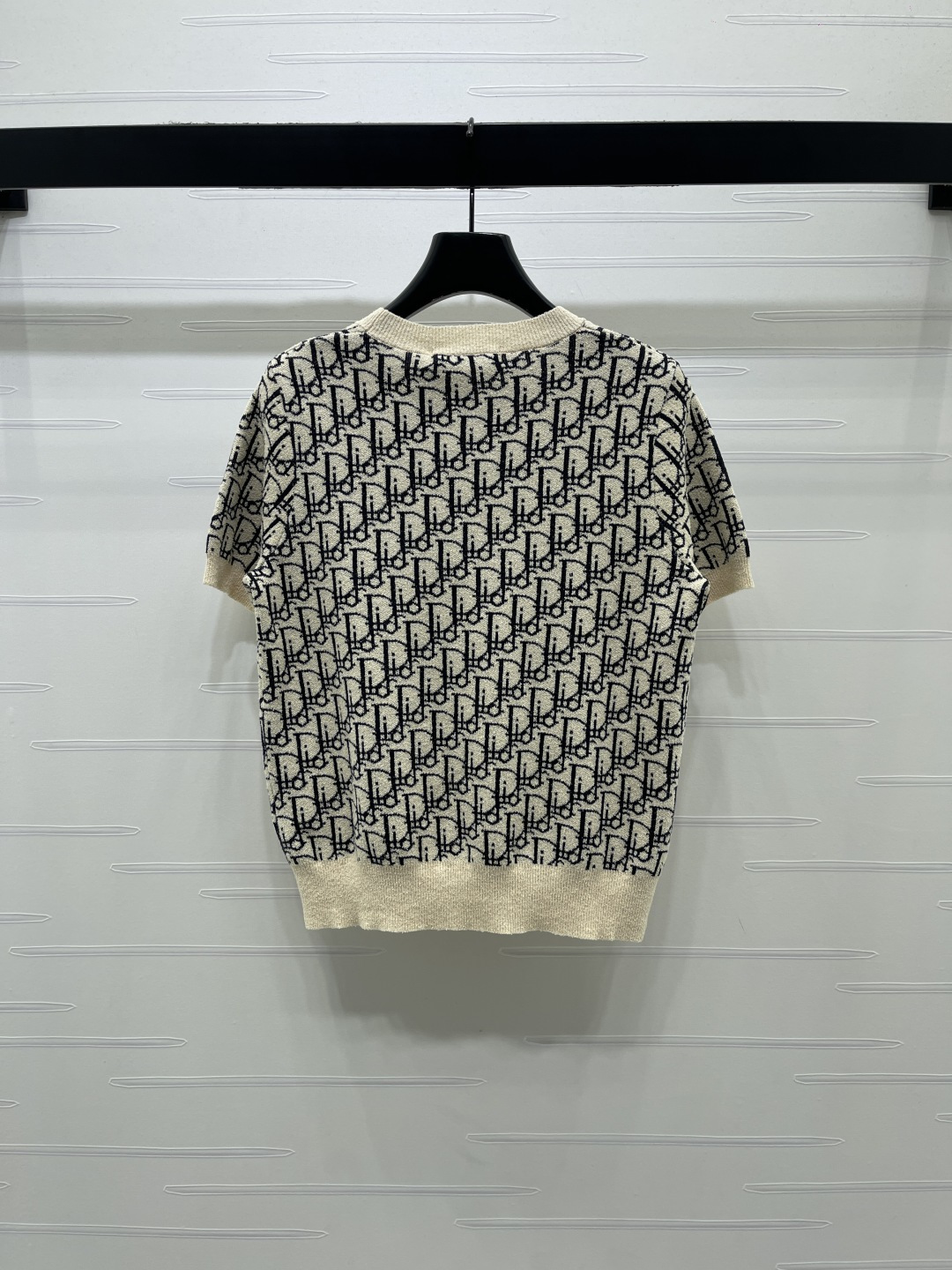 Dio*r oblique monogram jacquard short sleeve knit top cream A706B270C