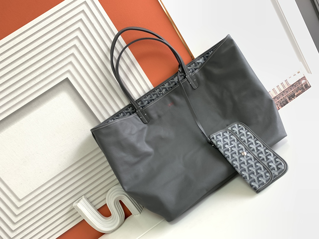 This is a replica GOYARD Anjou GM Bag in grey. The Anjou GM bag is a leather variant lined with goyardine that pays homage to the iconic Saint Louis bag. The ,Size ,