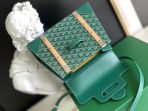 This is a replica GOYARD Saïgon PM Bag in green. The Saïgon bag is one of Maison Goyard’s emblematic pieces as it inherits all our trunk-making signature codes like the wood batons, leather corners and trunk rivets. In this structured PM format, the Saïgon bag can be worn with or without a strap for an elegant evening style.,