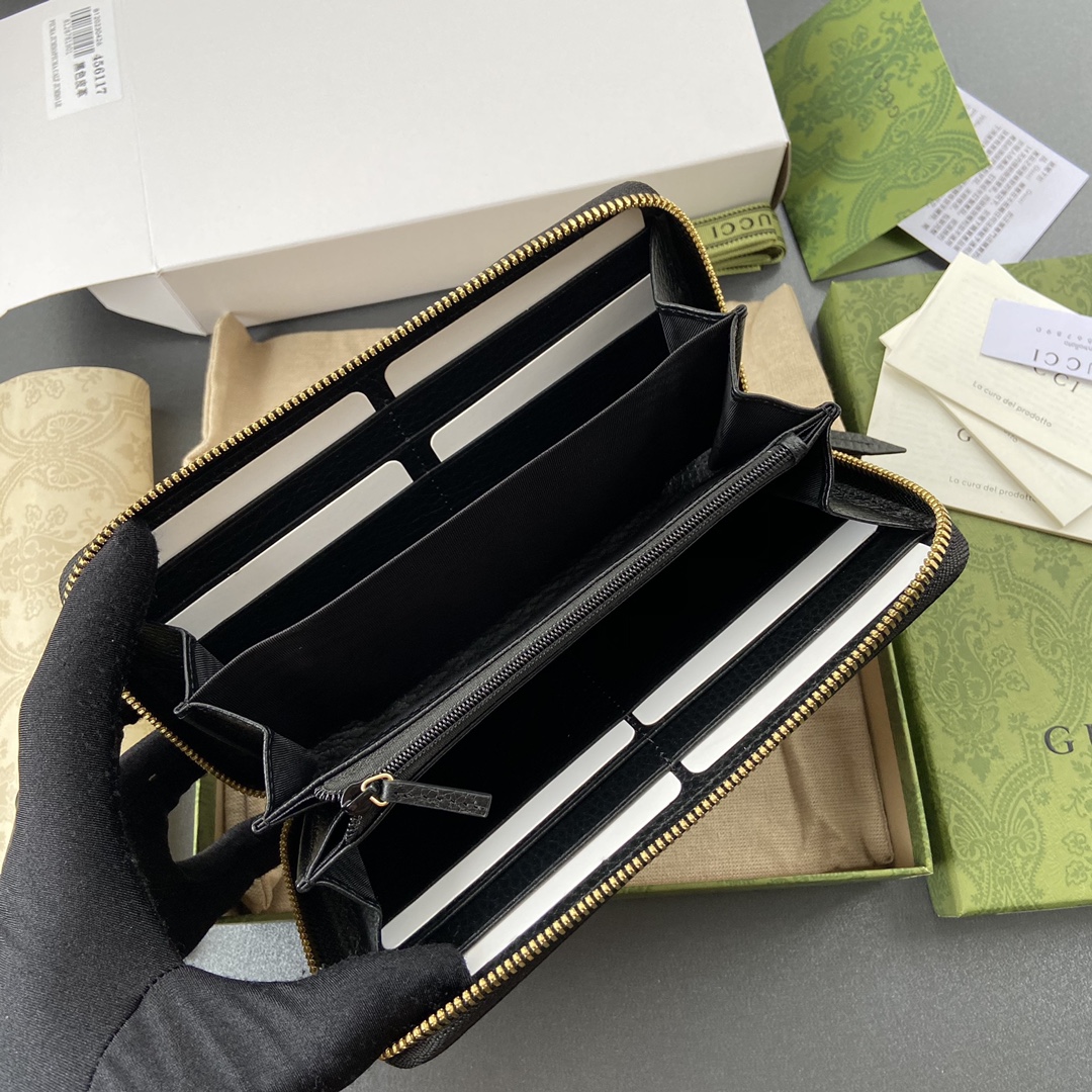 ,Black and Gucci Rosso Ancora red leather,Gold-toned hardware,Gucci Rosso Ancora red taffeta lining,Double G,12 card slots and three bill compartments,Zip coin pocket,Zip around closure,Weight: 0.50lbs approximately,7.5″W x 4.1″H x .8″D