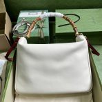This is a replica GUCCI Diana large shoulder bag in white leather. Black leather trim. ,