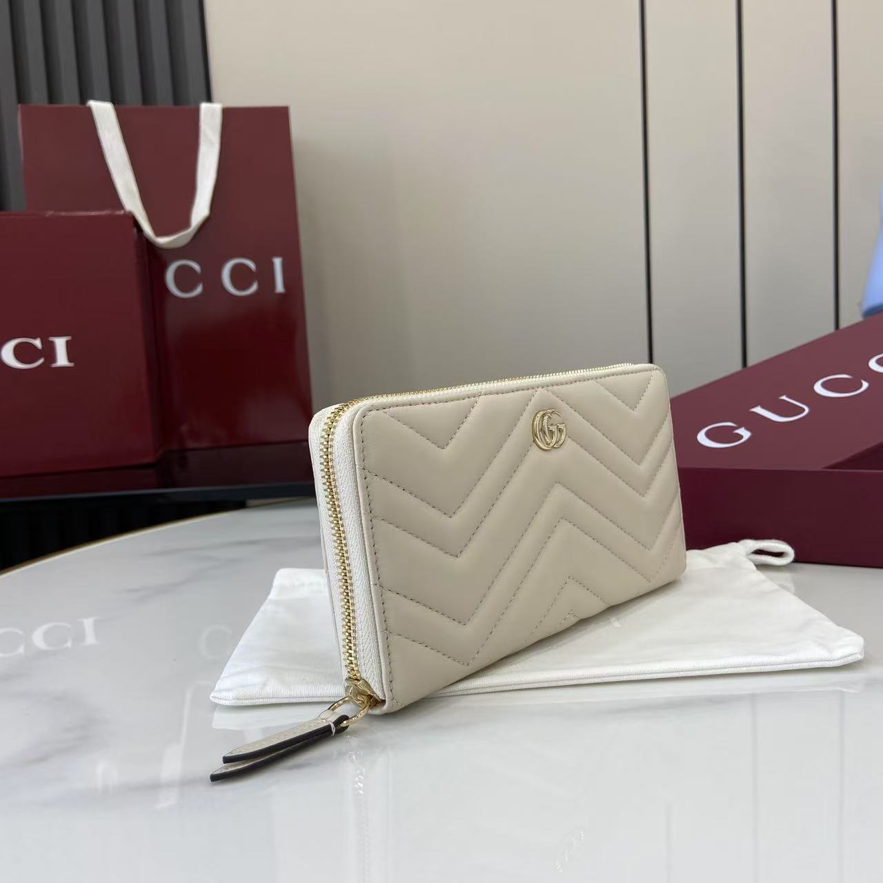This is a replica GUCCI GG Marmont zip around wallet 837758. ,