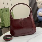 This is a replica GUCCI Jackie 1961 Small Shoulder Bag in Rosso Ancora patent leather. Crafted from fine leather which highlights its craftsmanship, it comes in crescent shape, and sleek silhouette. Light gold-toned hardware, leather trim, and an additional strap featuring the green and red Web.,Size,