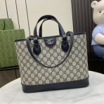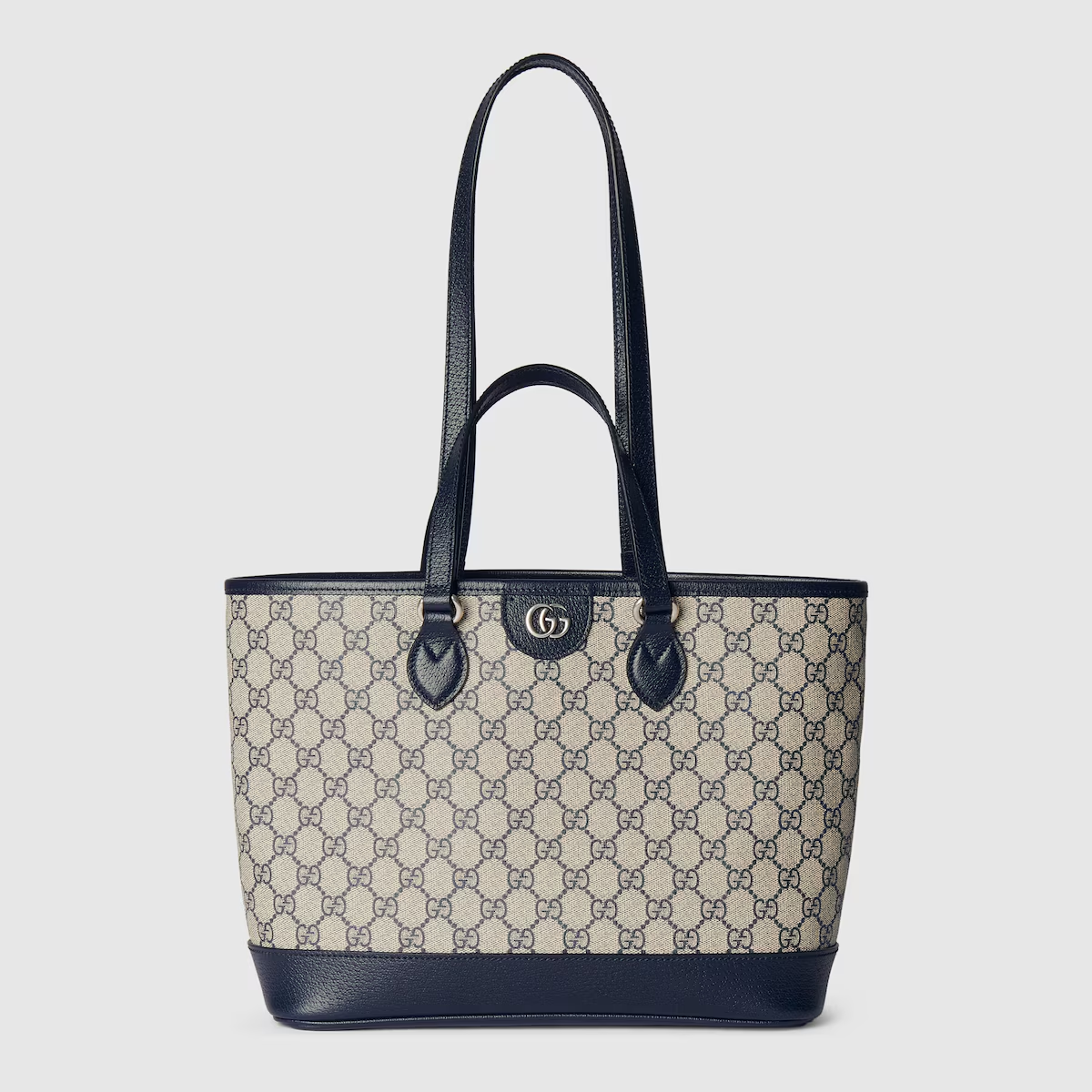 This is a replica GUCCI Ophidia small tote bag in Beige and blue GG Supreme. Dark blue,Size: Small,