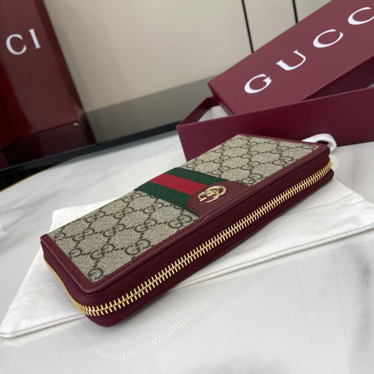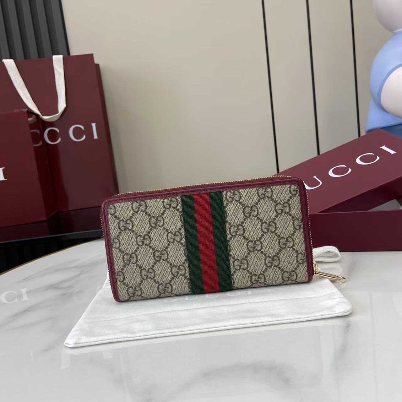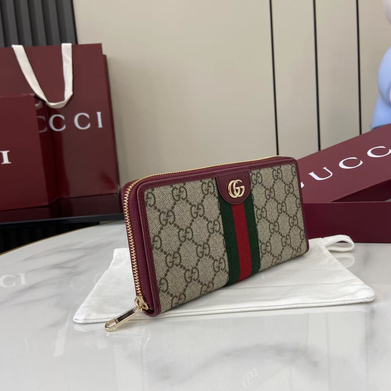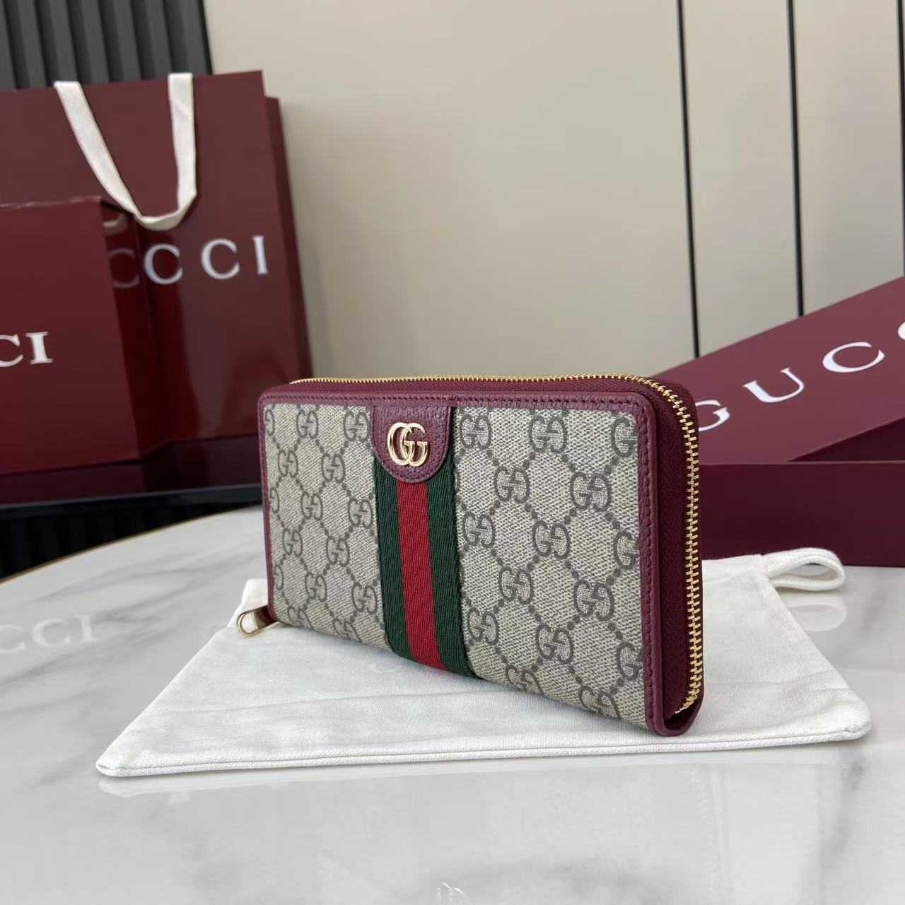 This is a replica GUCCI Ophidia zip around wallet 838484. ,