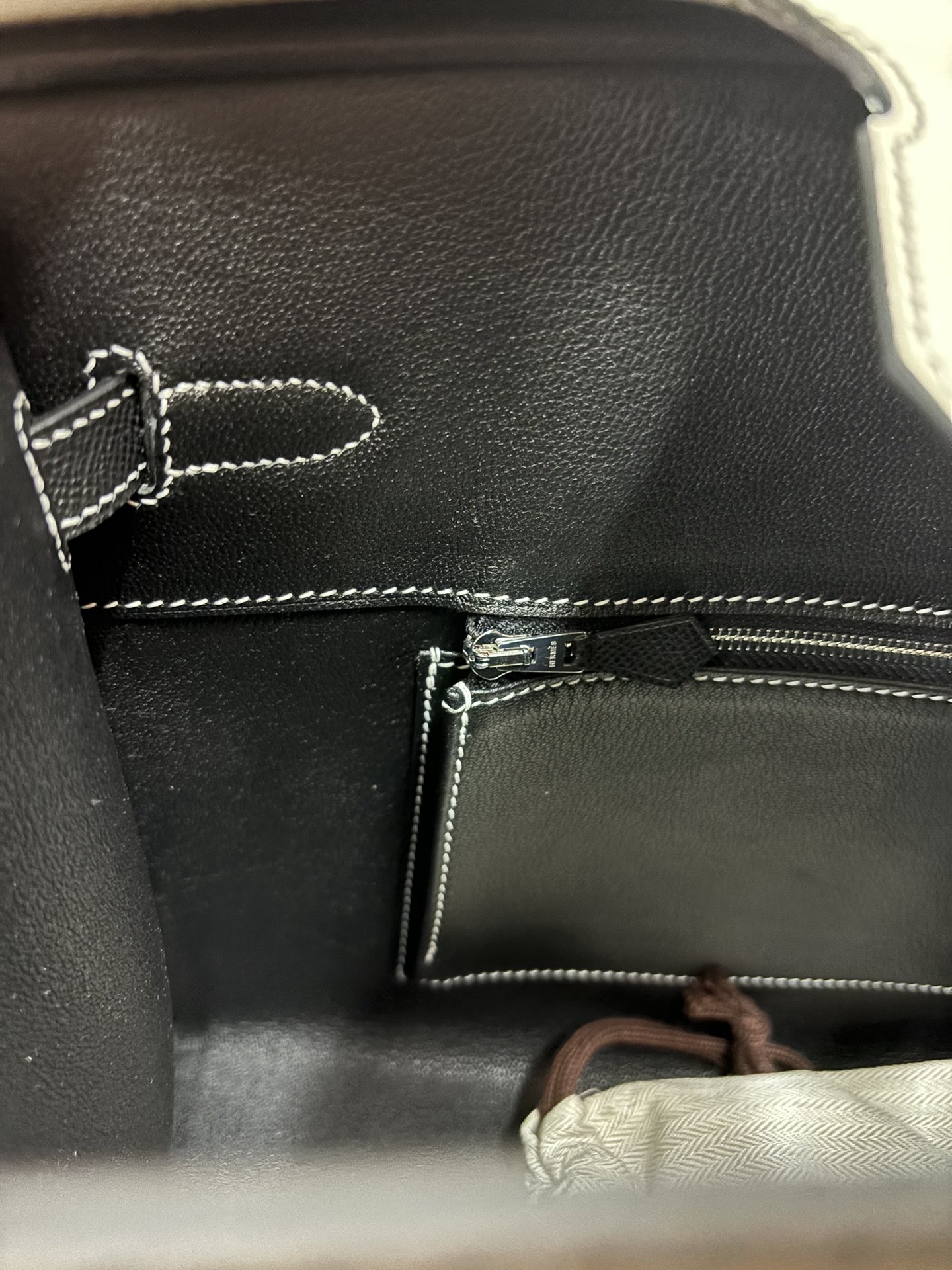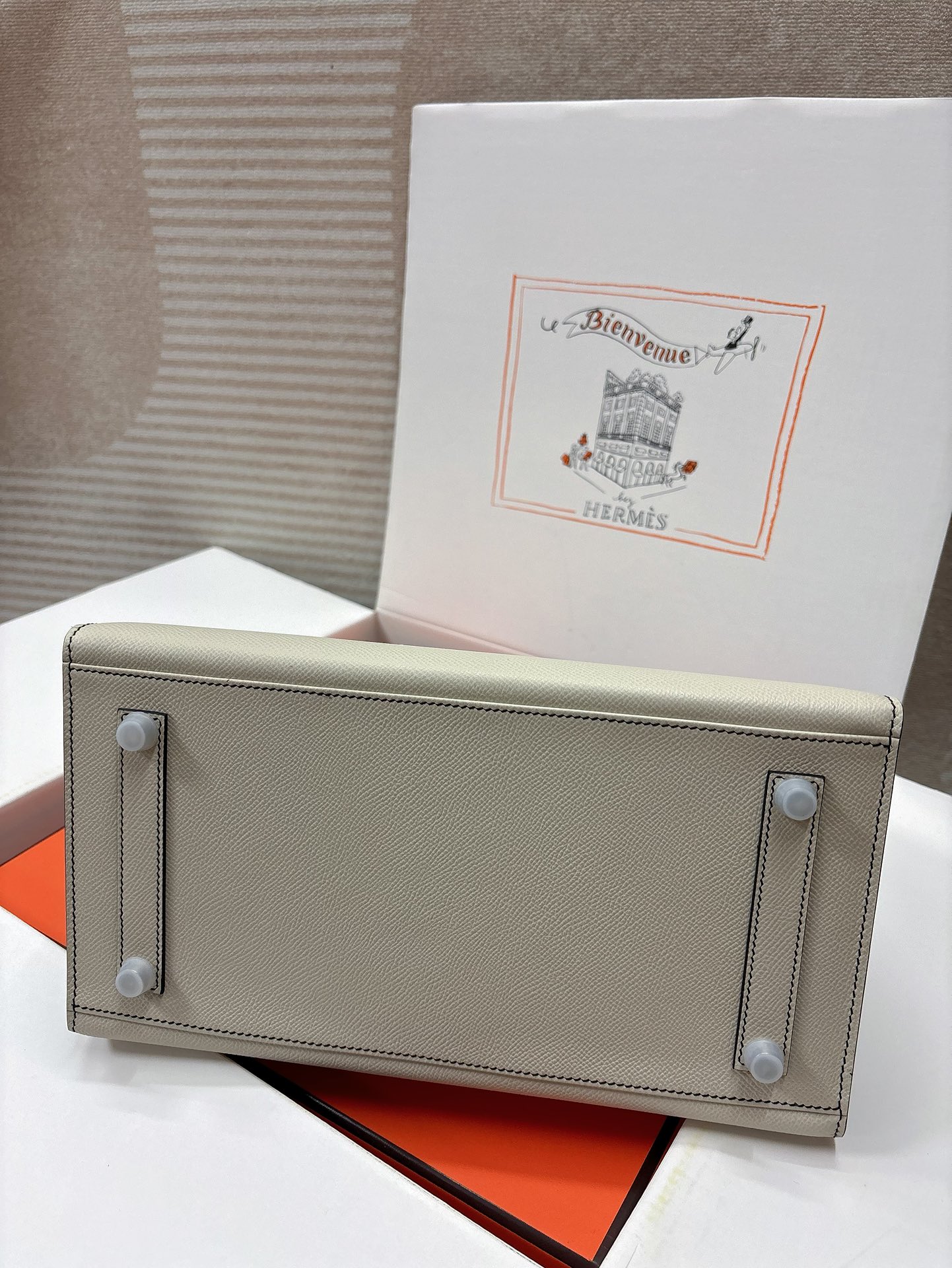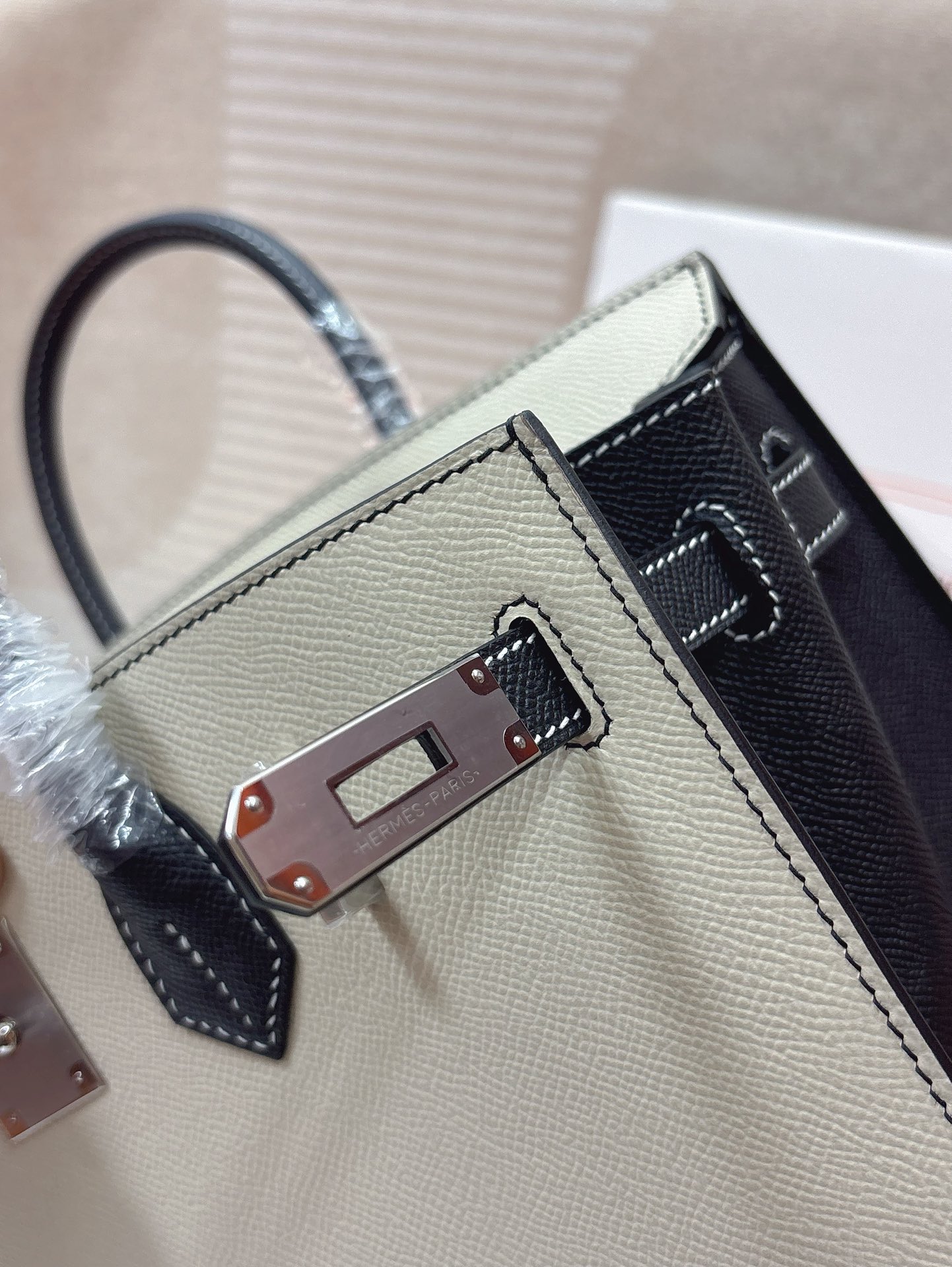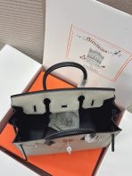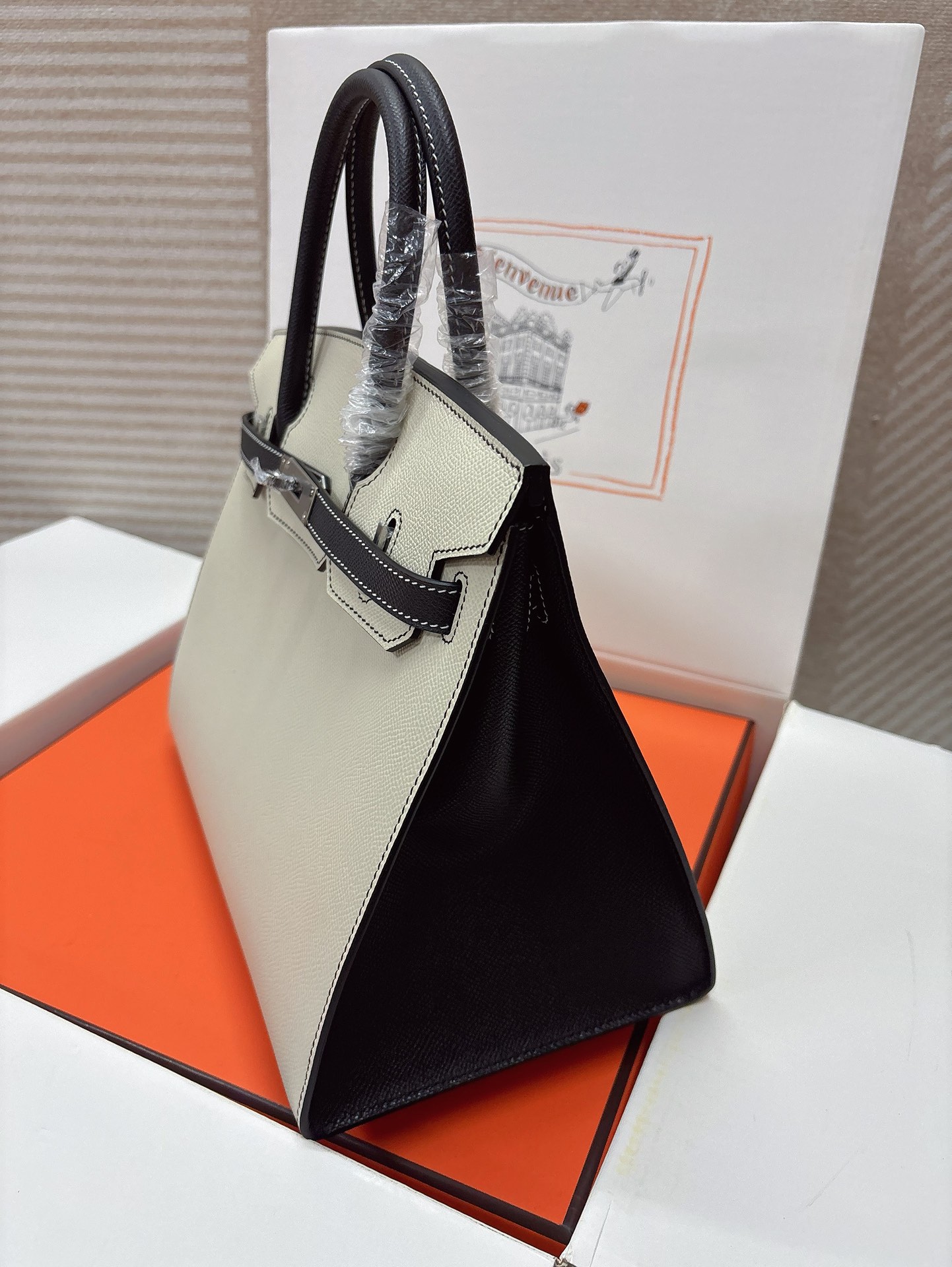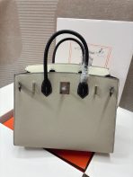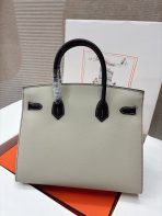 This is a replica ###Hermès Birkin 30 Craie and Black Epsom Palladium Hardware. ###