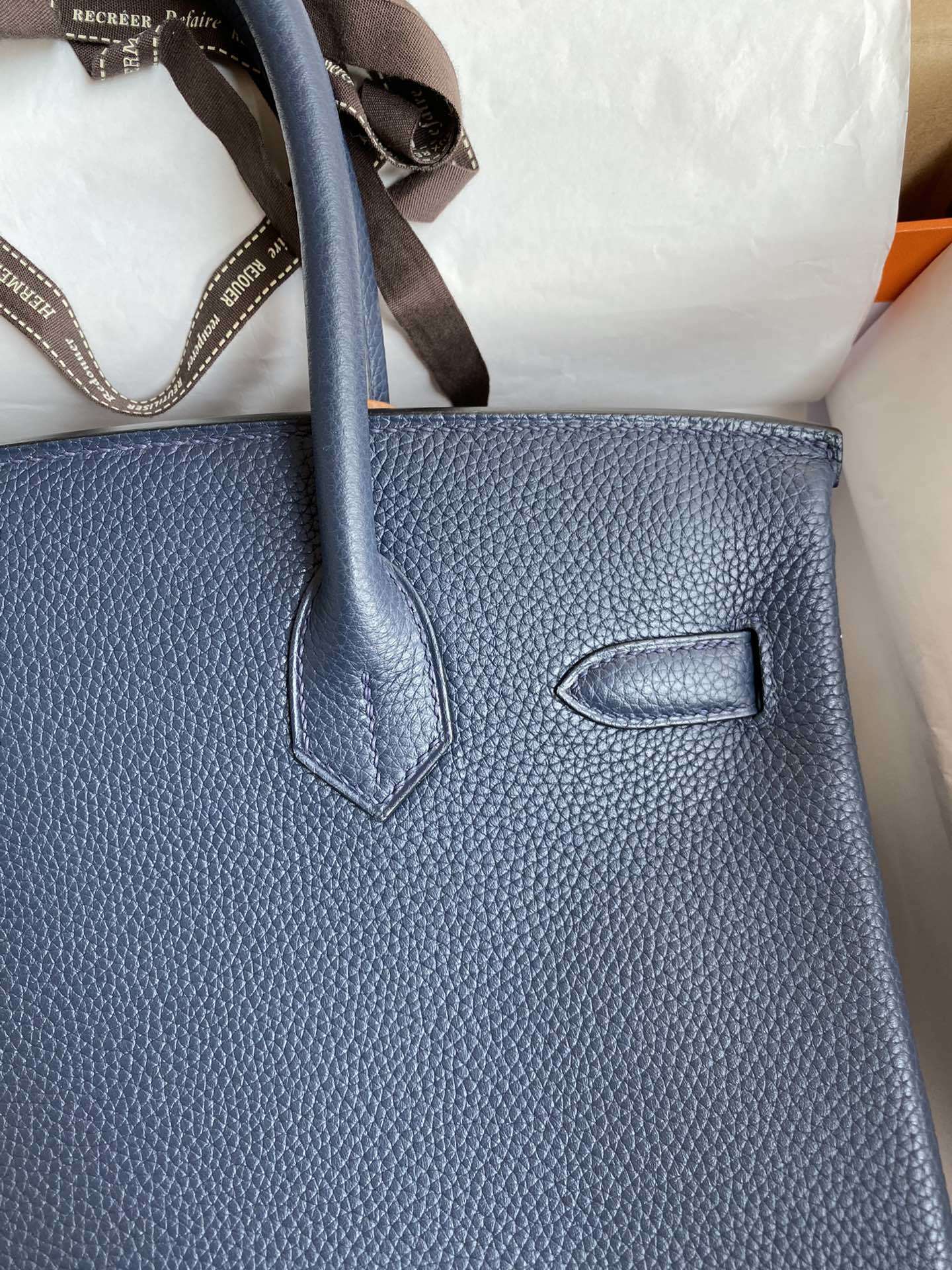This is a replica ###Hermès Birkin 30 Deep Blue Togo Palladium Hardware. ###
