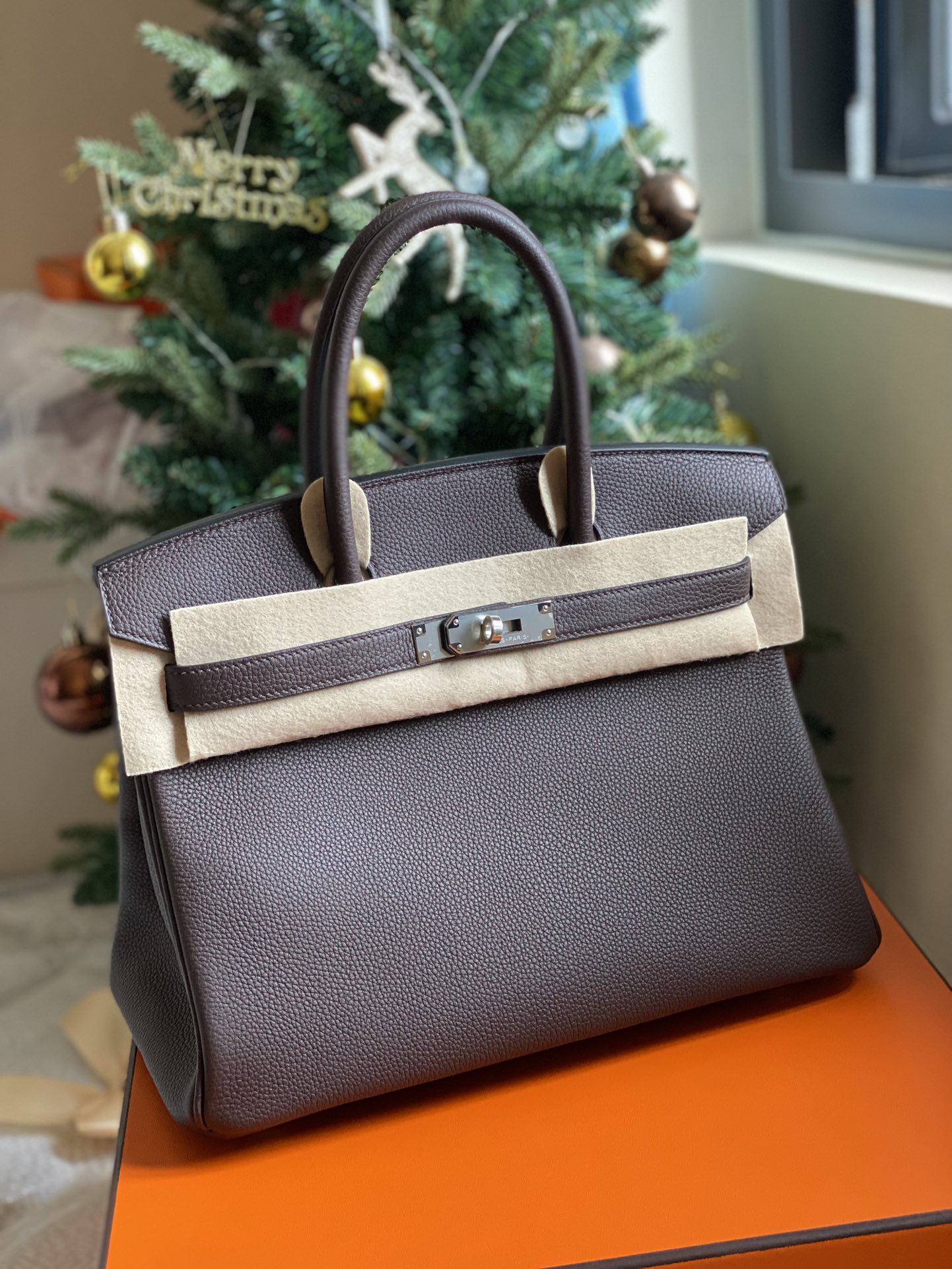 This is a replica ###Hermès Birkin 30 Etoupe Togo Palladium Hardware. ###