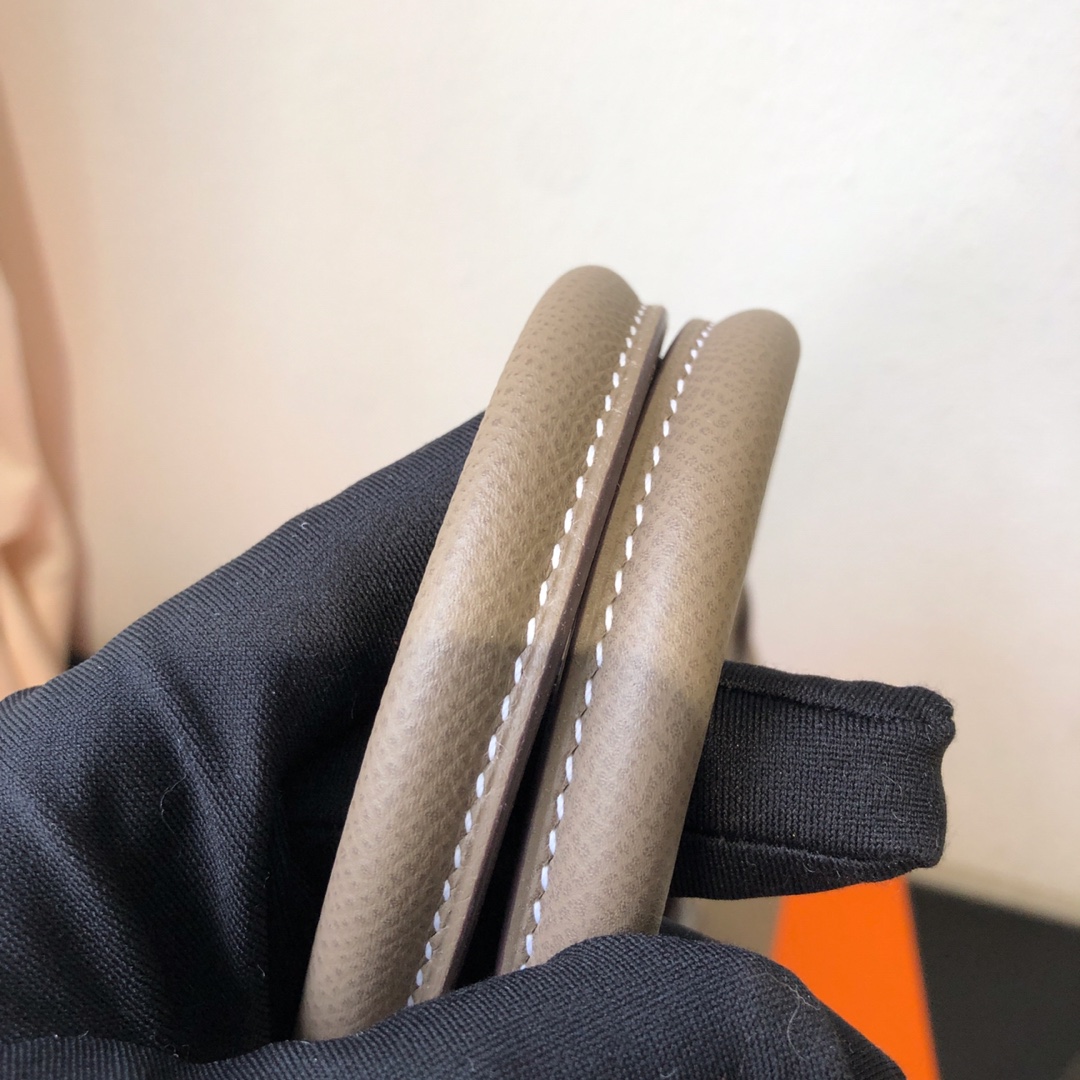 ###This Birkin is in Etoupe epsom leather with Palladium hardware and has tonal stitching, front flap, two straps with center toggle closure, clochette with lock and two keys, and double rolled handles.###