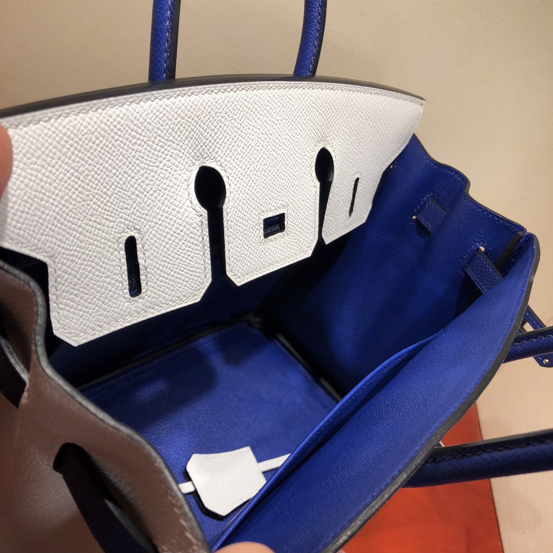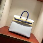 This is a replica ###Hermès Birkin 35 Blanc and Blue Htdra Epsom Leather and Gold Hardware. ###