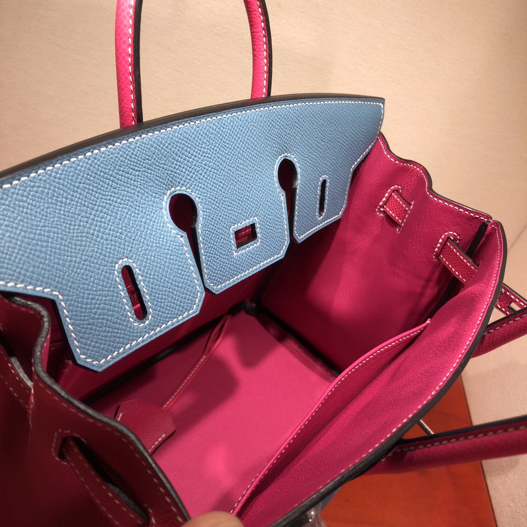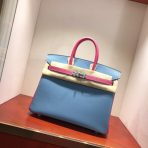 This is a replica ###Hermès Birkin 35 Blue Jean and Rose Tyrien Epsom Leather and Palladium Hardware. ###