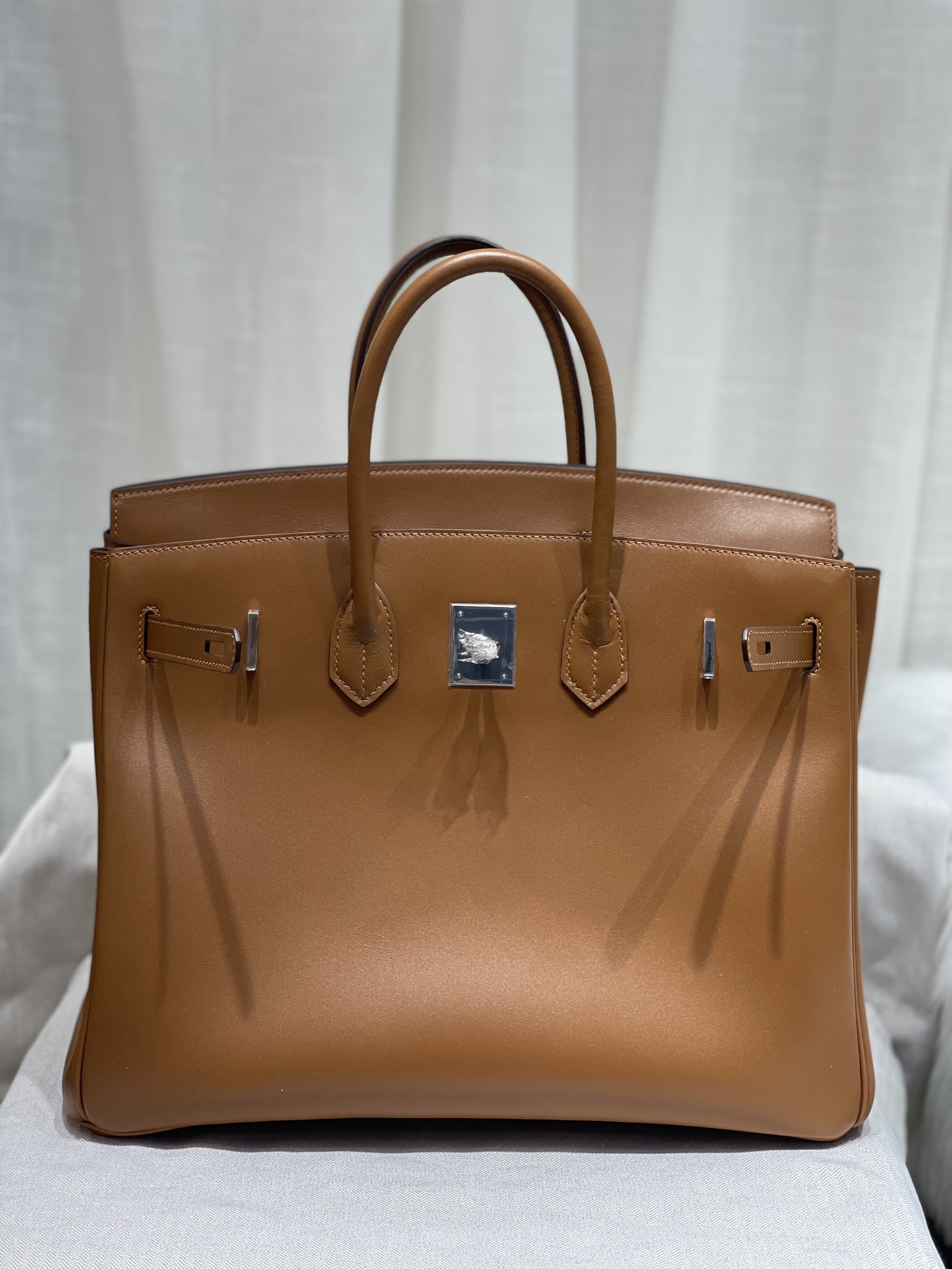 This is a replica Hermès Birkin 35 Gold Box Palladium Hardware###. ###