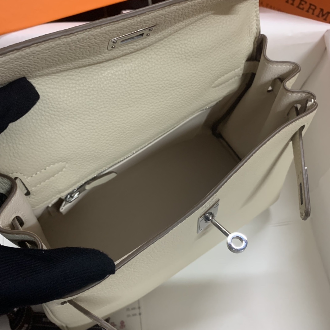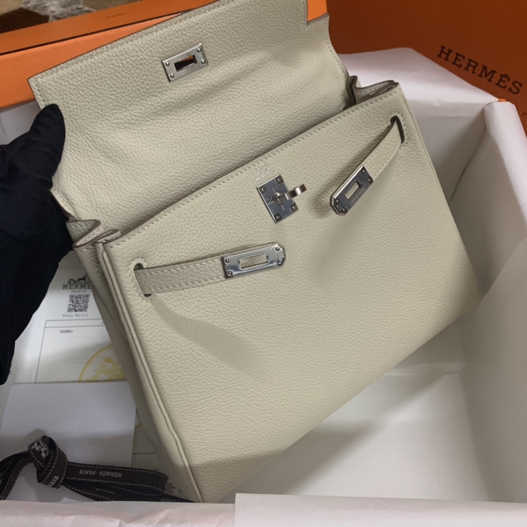 Hermès Kelly Retourne 25 Craie Togo Palladium Hardware