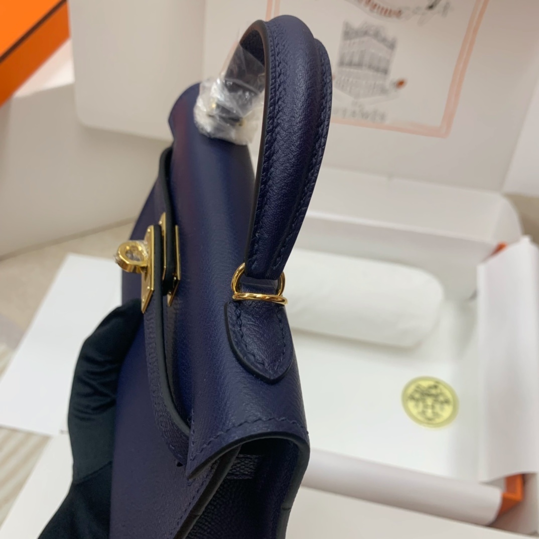 This is a replica ###Hermès Kelly Sellier 20 Bleu Saphir Epsom Leather Gold Hardware. ###