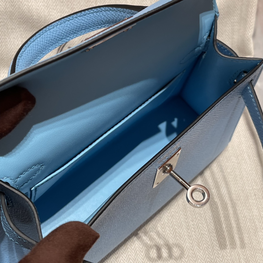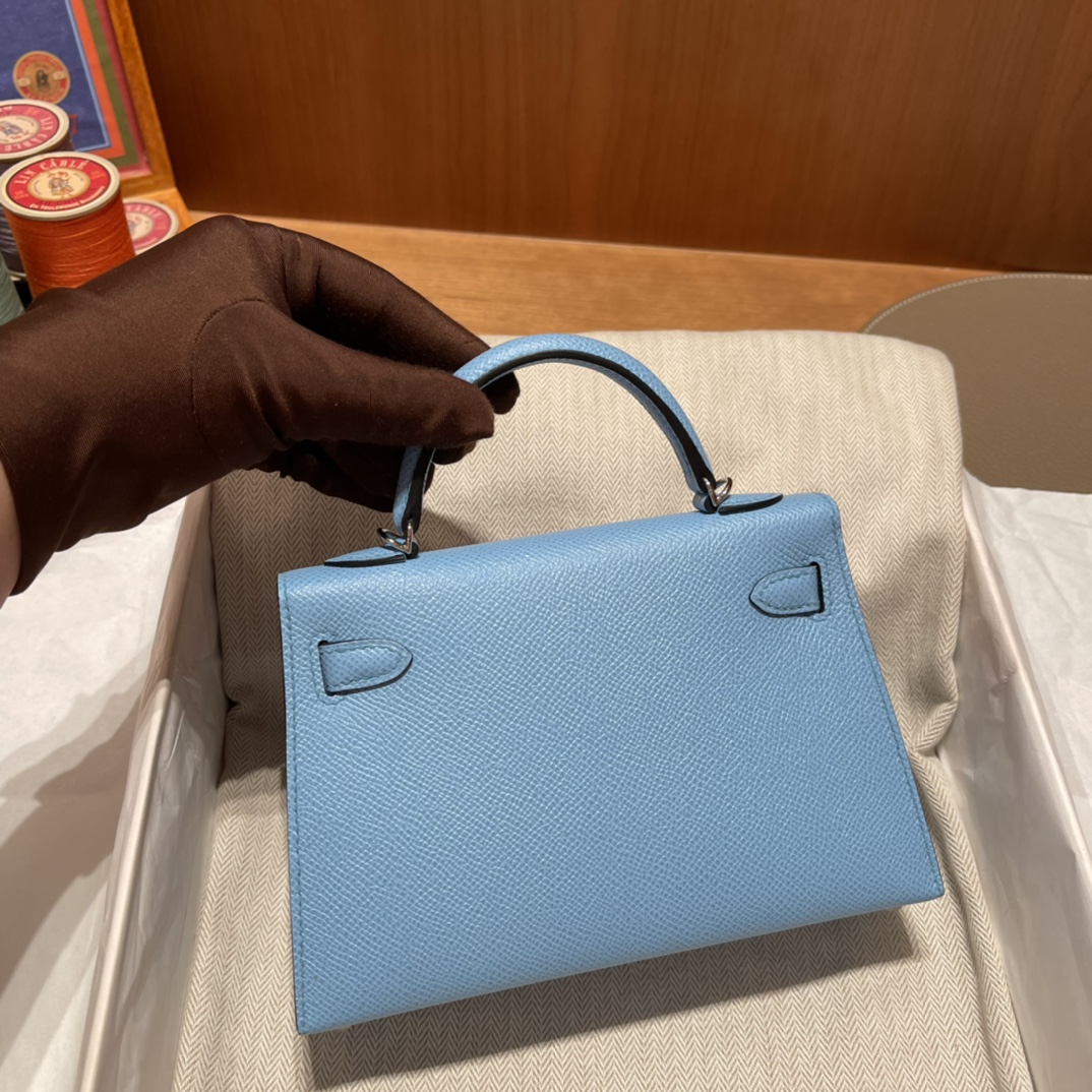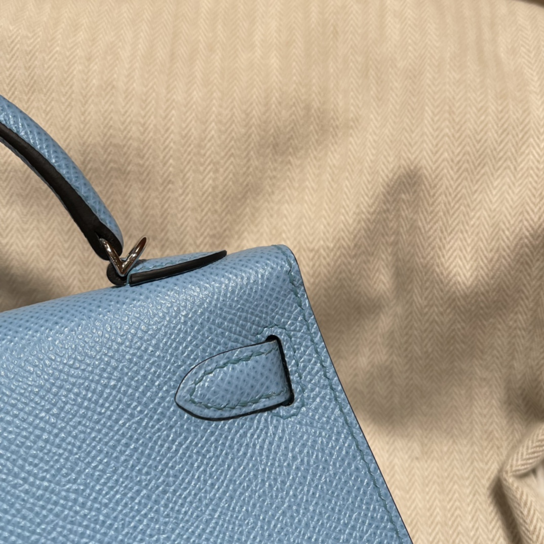 This is a replica ###Hermès Kelly Sellier 20 Celeste Togo Leather Palladium Hardware. ###