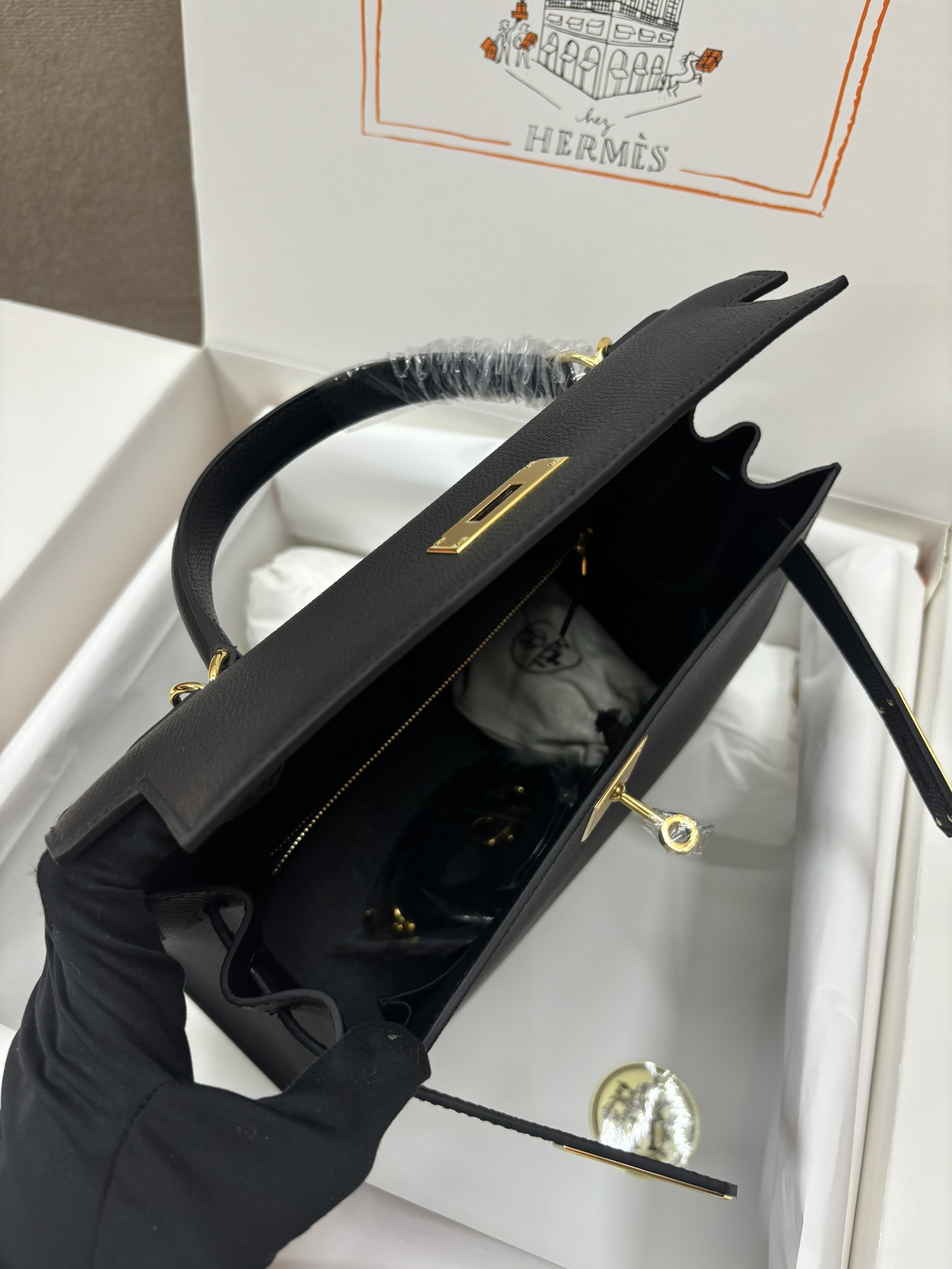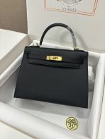 This is a replica ###Hermès Kelly Sellier 20 Noir Epsom Leather Gold Hardware. ###