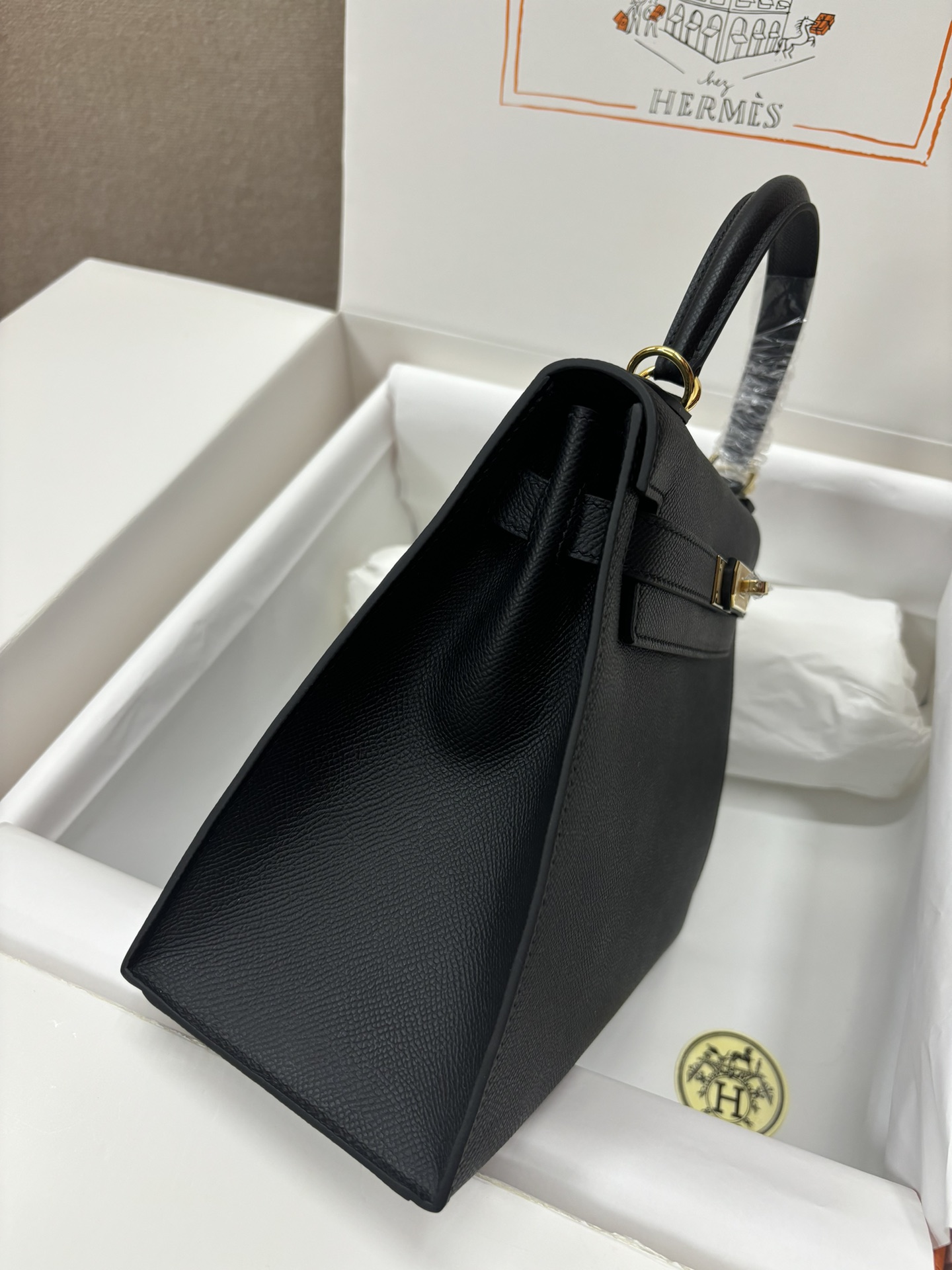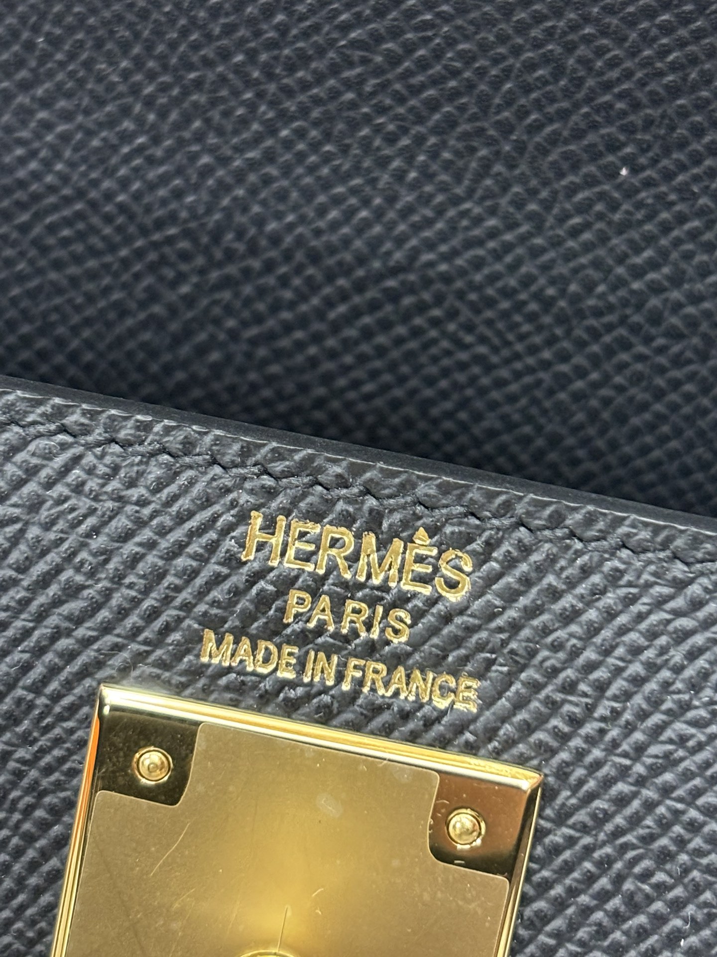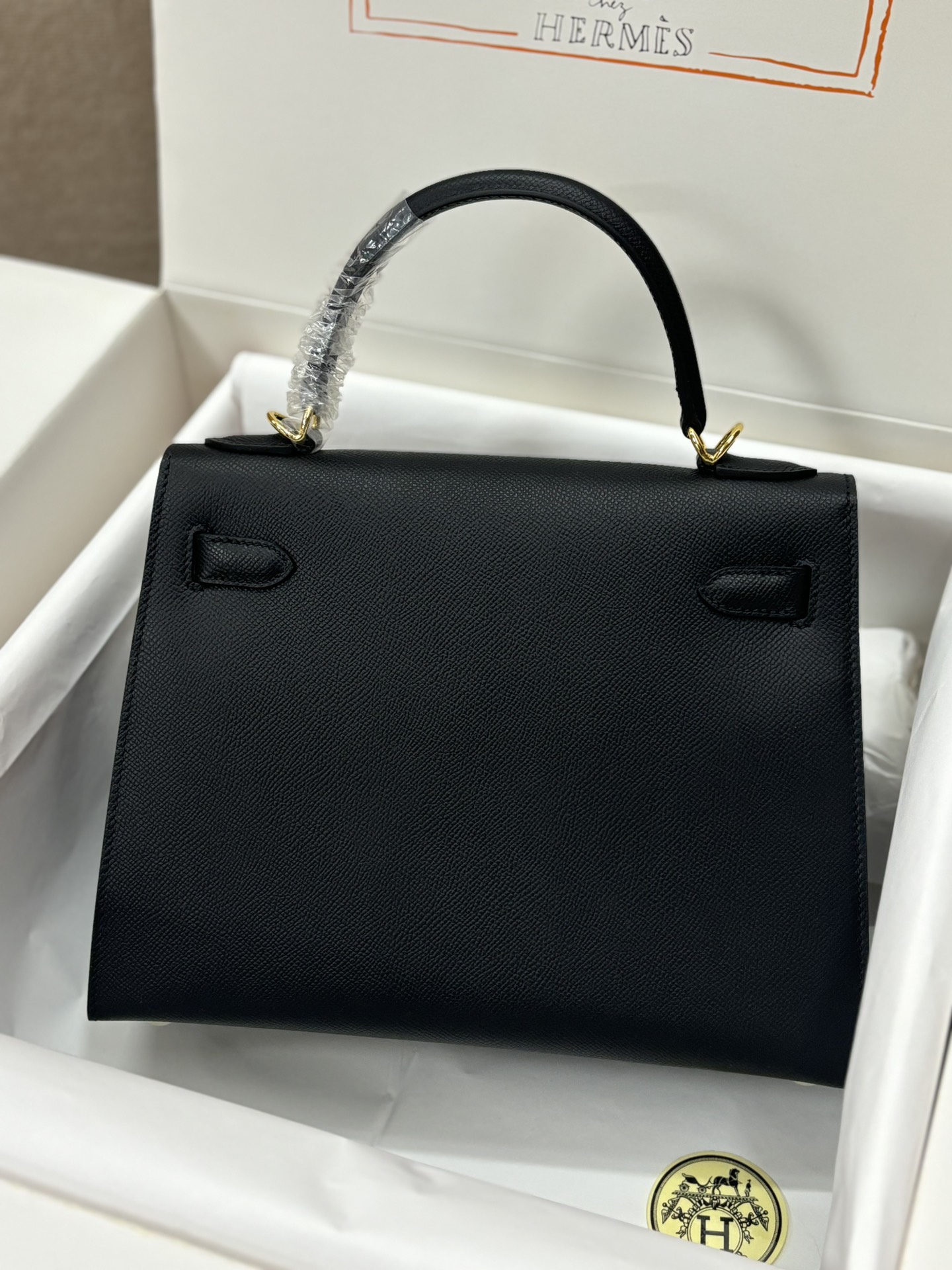 This is a replica ###Hermès Kelly Sellier 25 Black Epsom Gold Hardware. ###