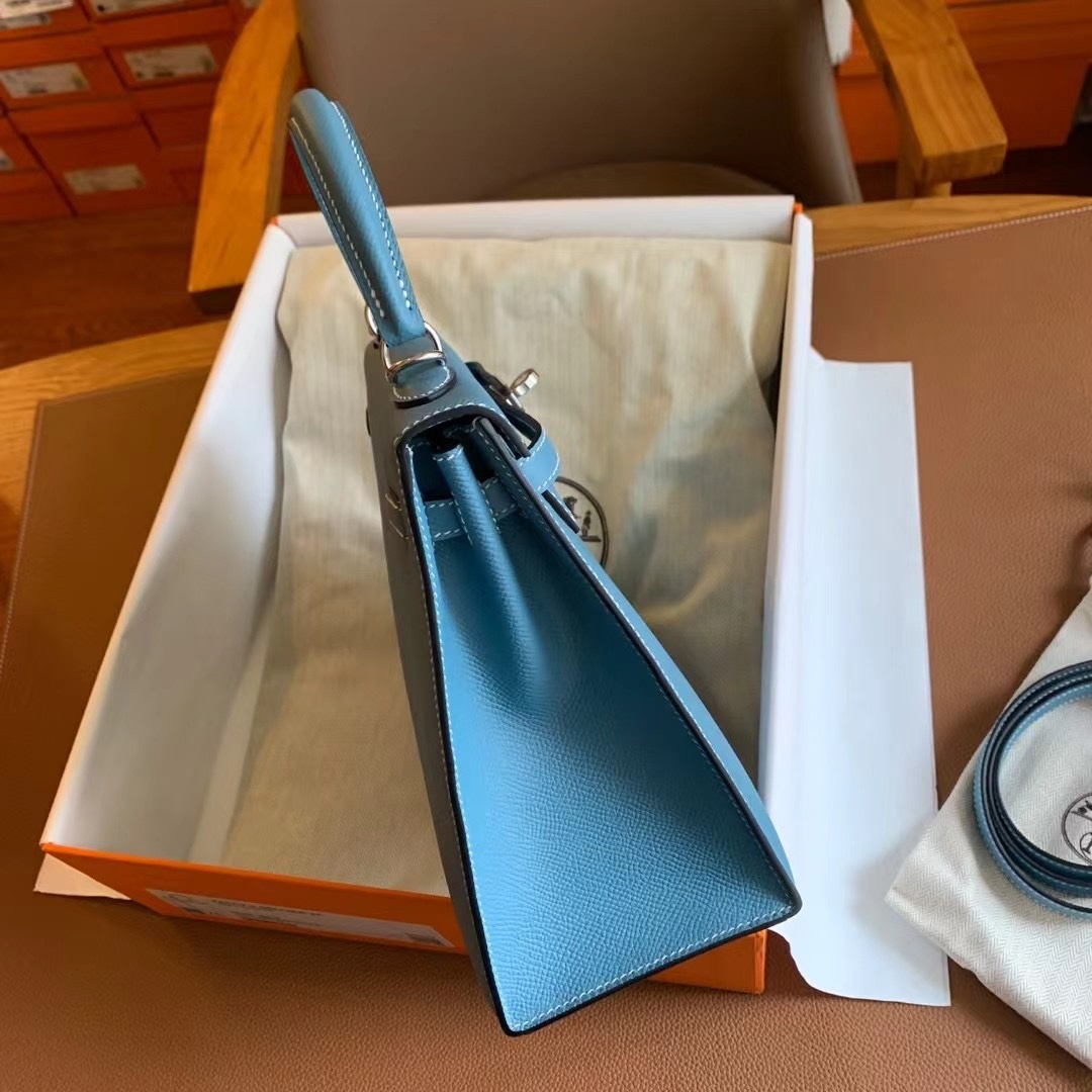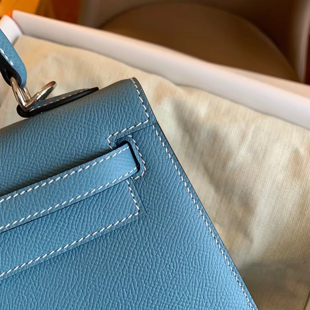 Hermès Kelly Sellier 25 Blue Jean Epsom Palladium Hardware
