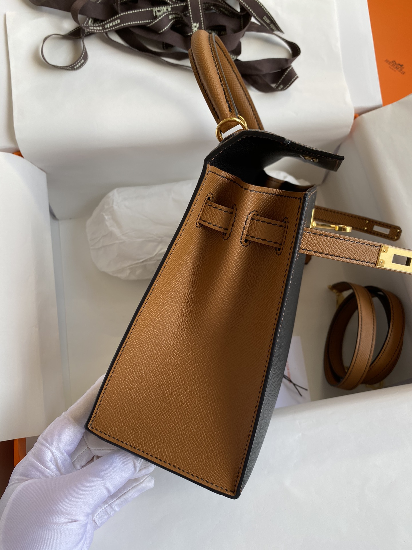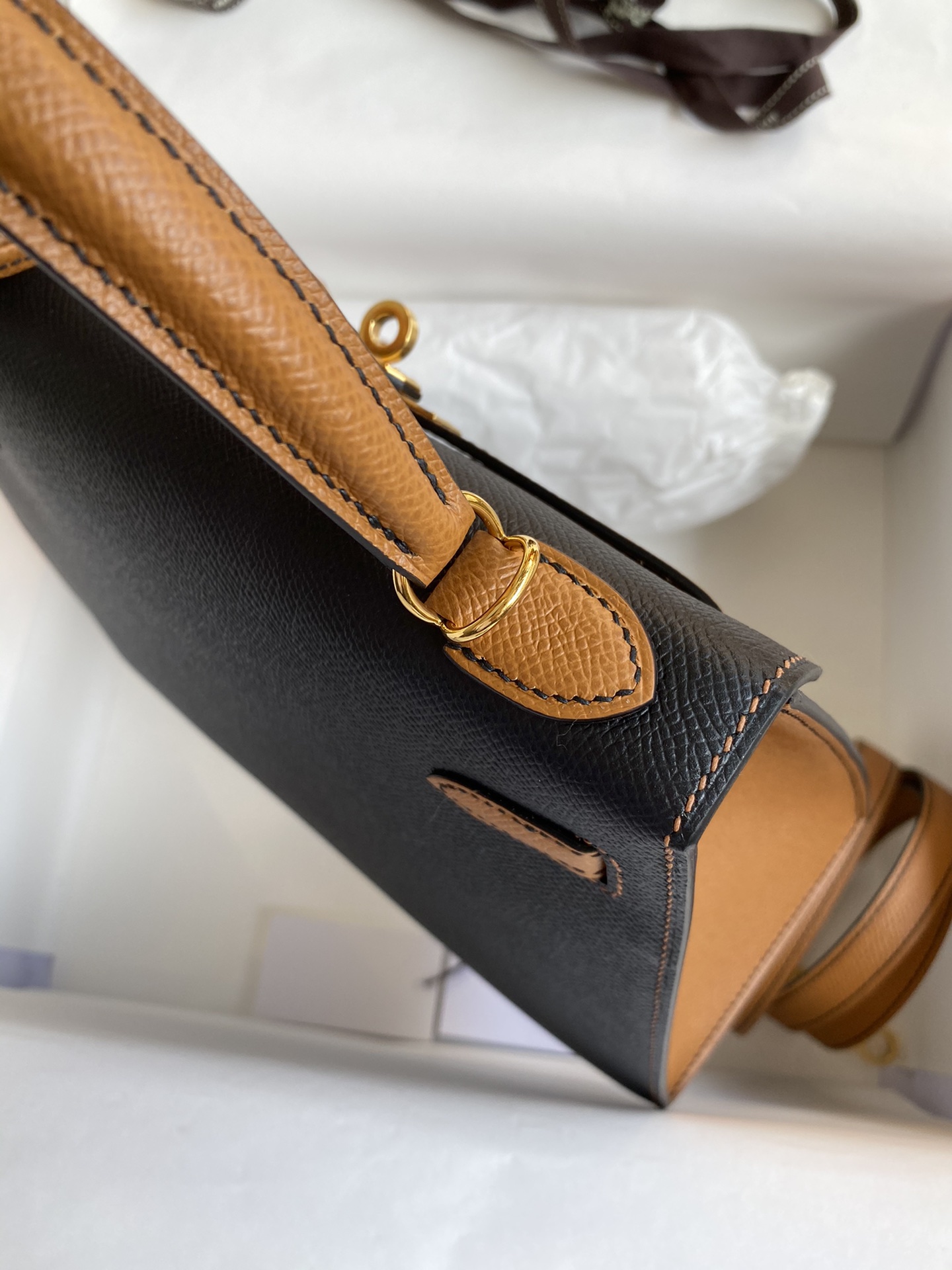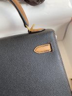This is a replica ###Hermès Kelly Sellier 25 Noir and Gold Epsom Gold Hardware. ###
