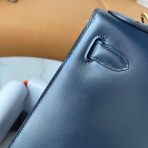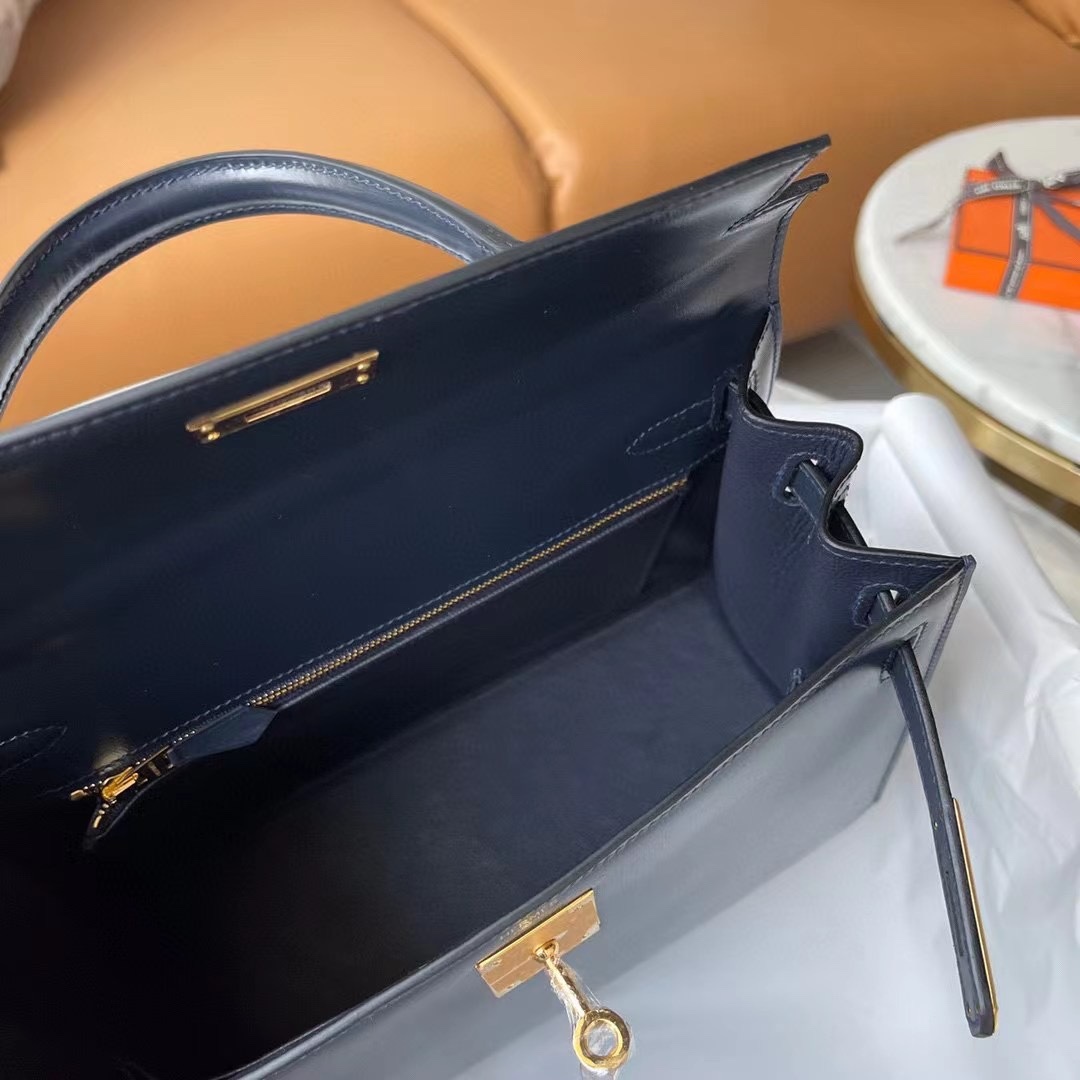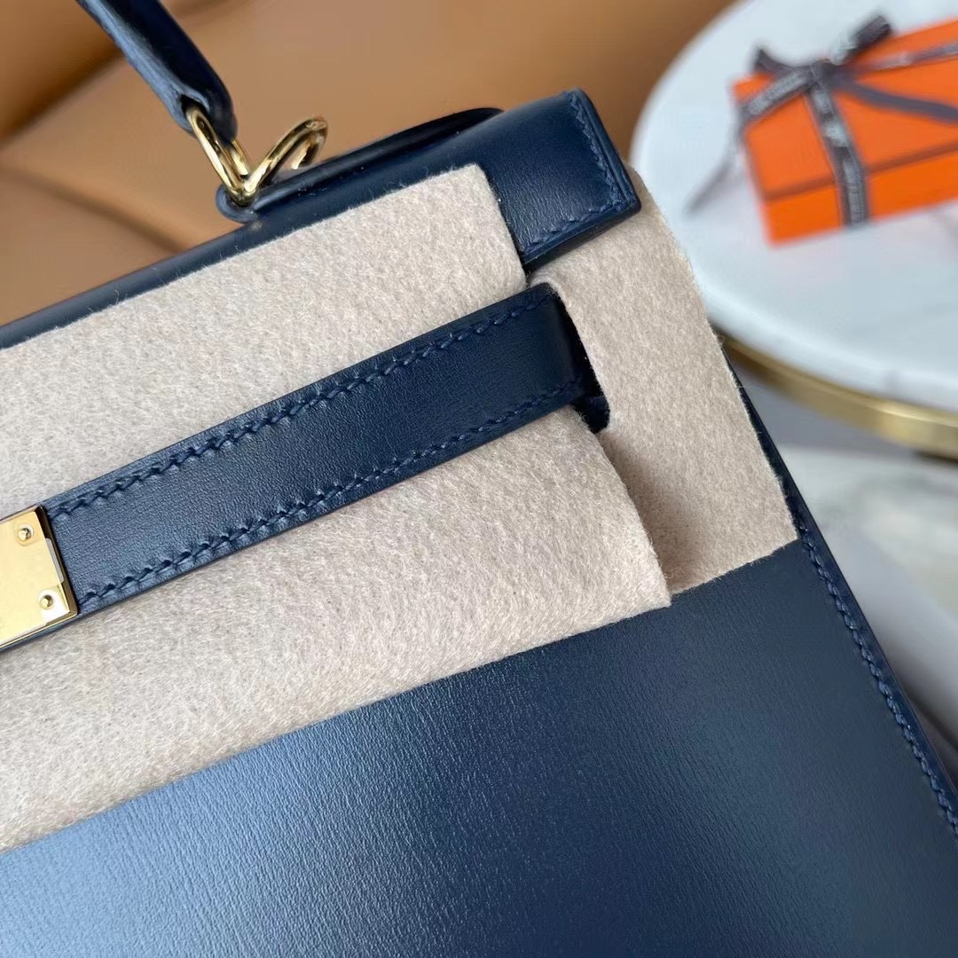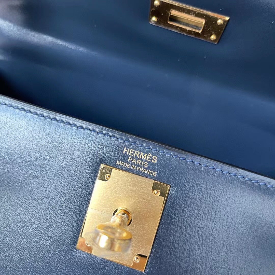 This is a replica ###Hermès Kelly Sellier 28 Blue Nuit Box Leather Gold Hardware. ###