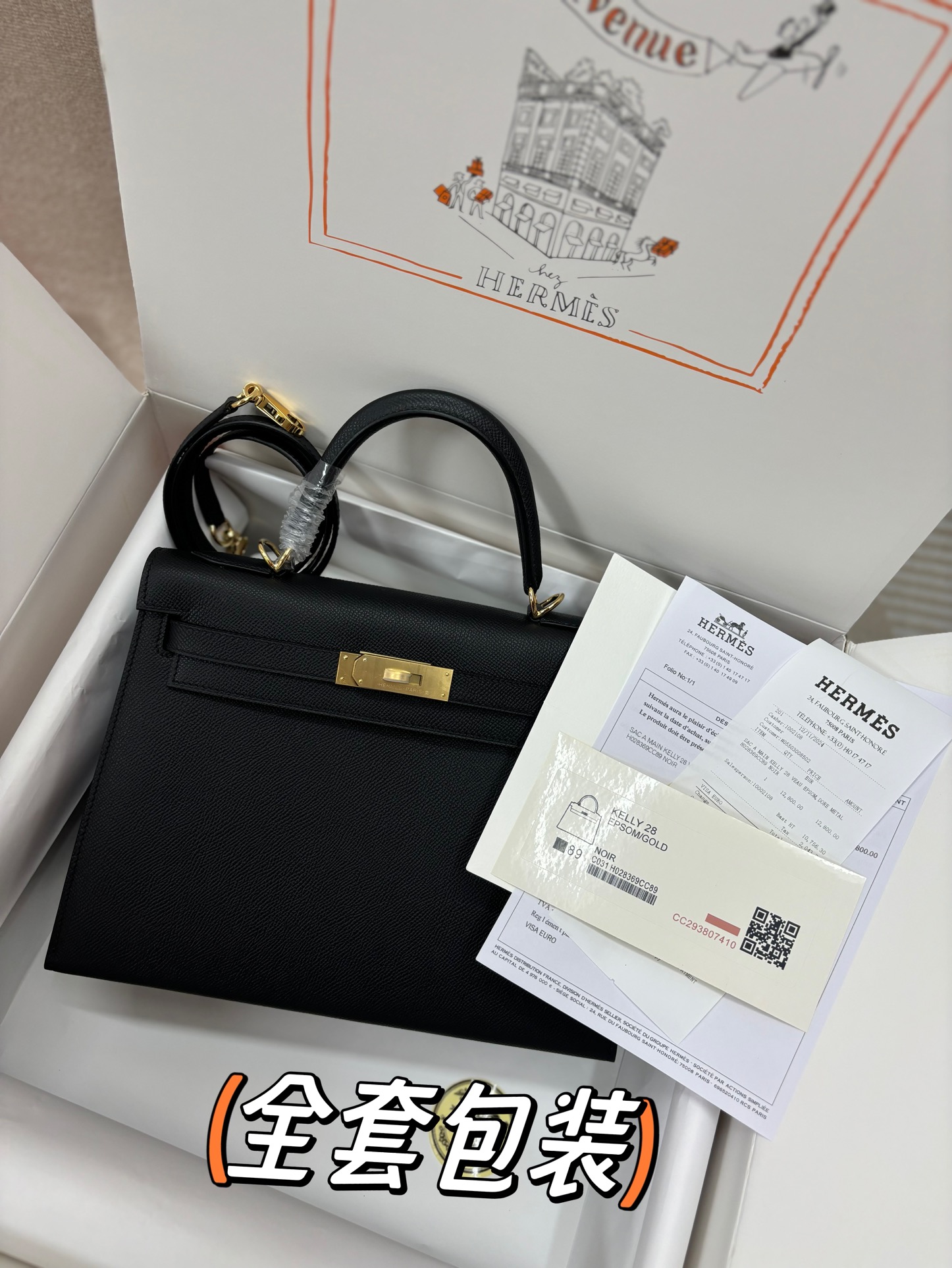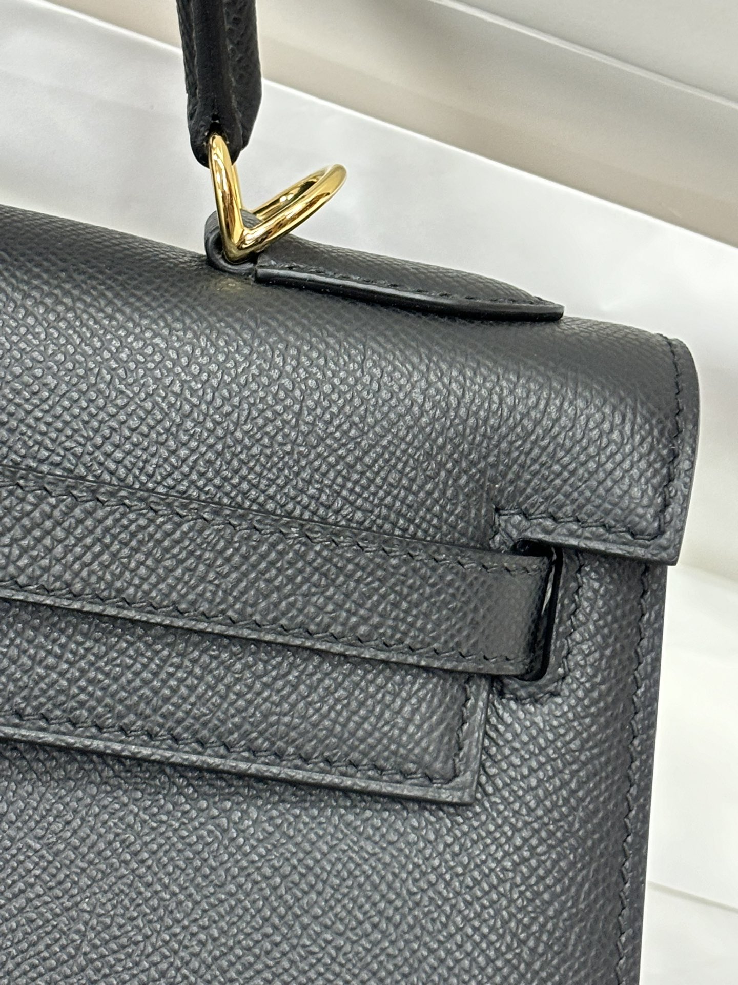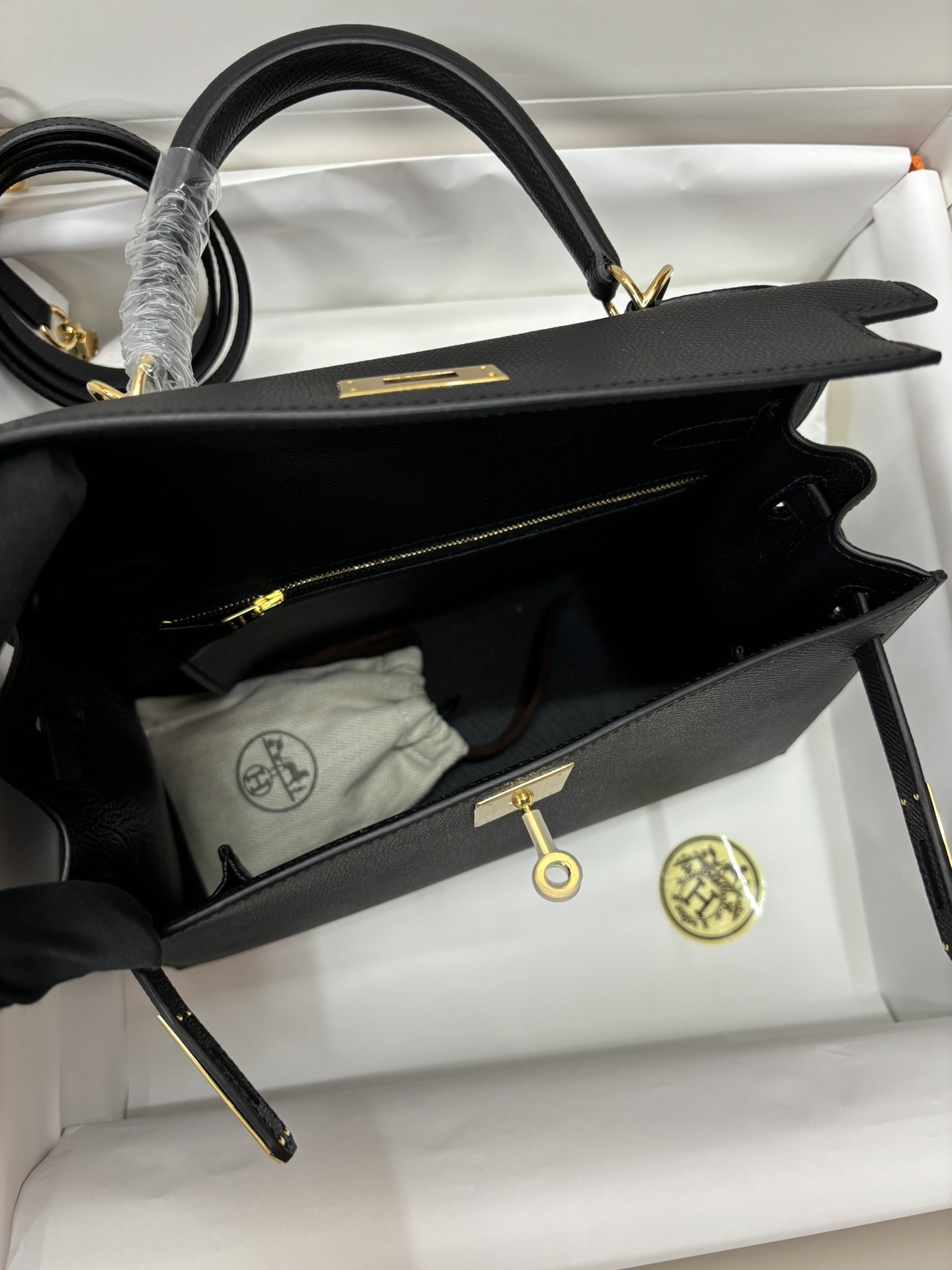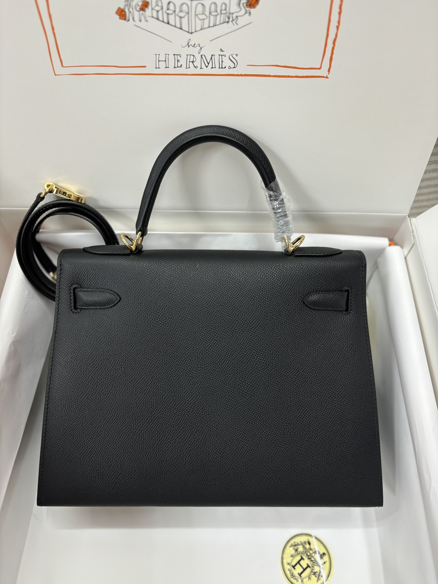 This is a replica ###Hermès Kelly Sellier 28 Noir Epsom Leather Gold Hardware. ###
