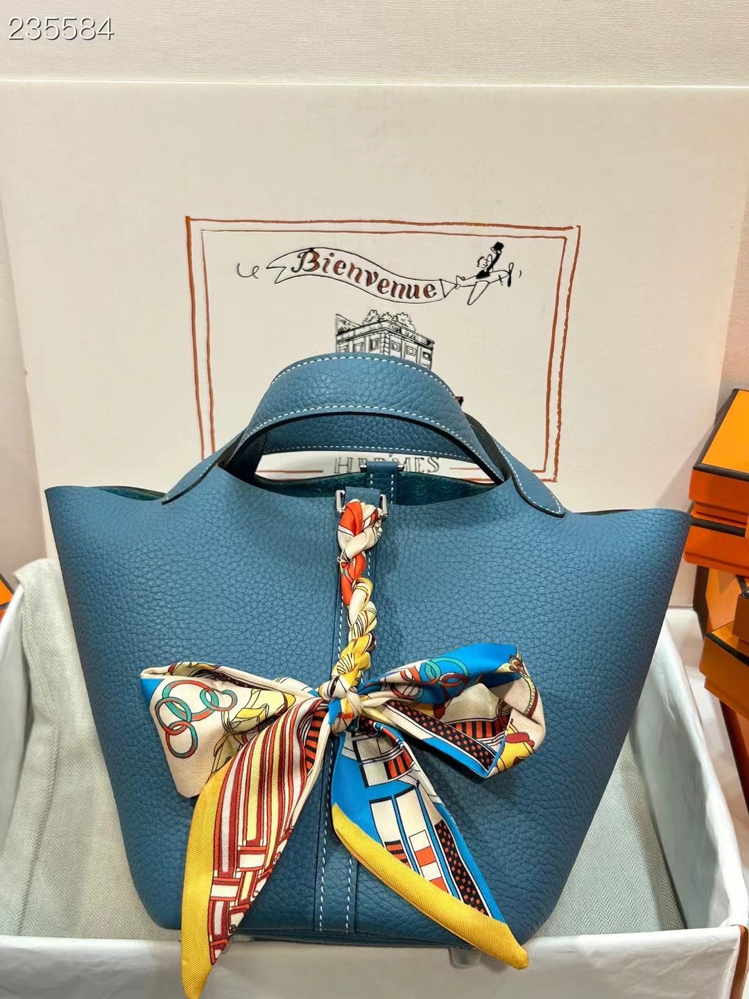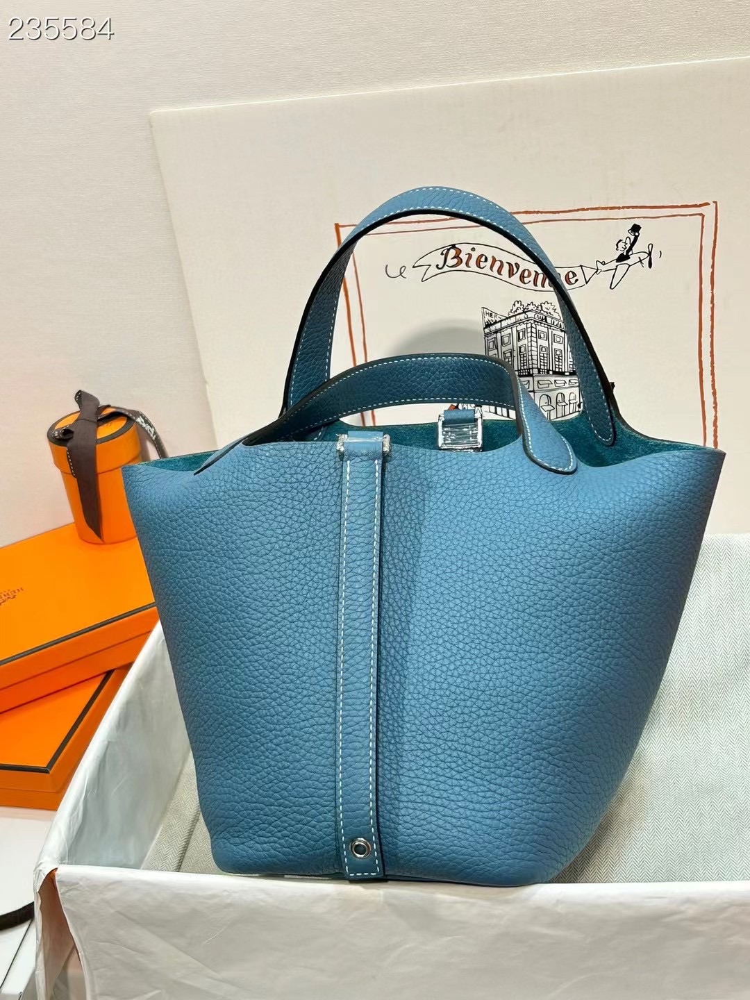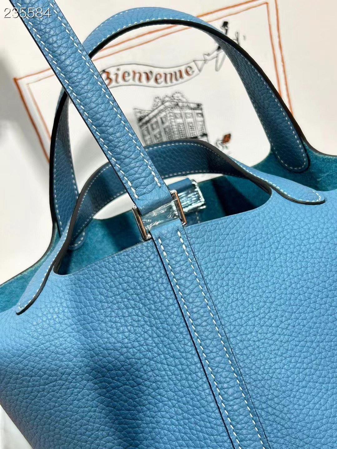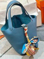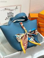 This is a replica ###Hermès Picotin Lock 18 Blue Jean Clemence Palladium Hardware. ###