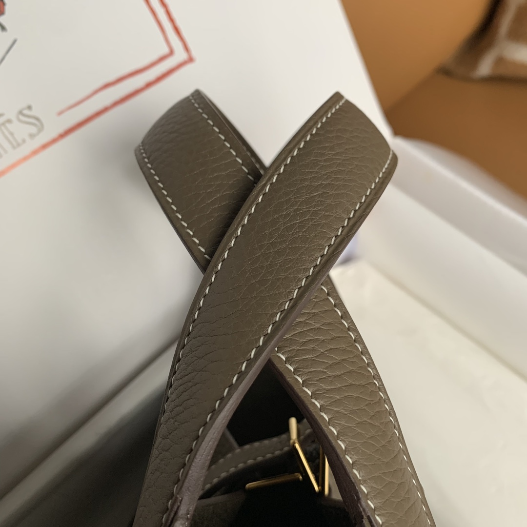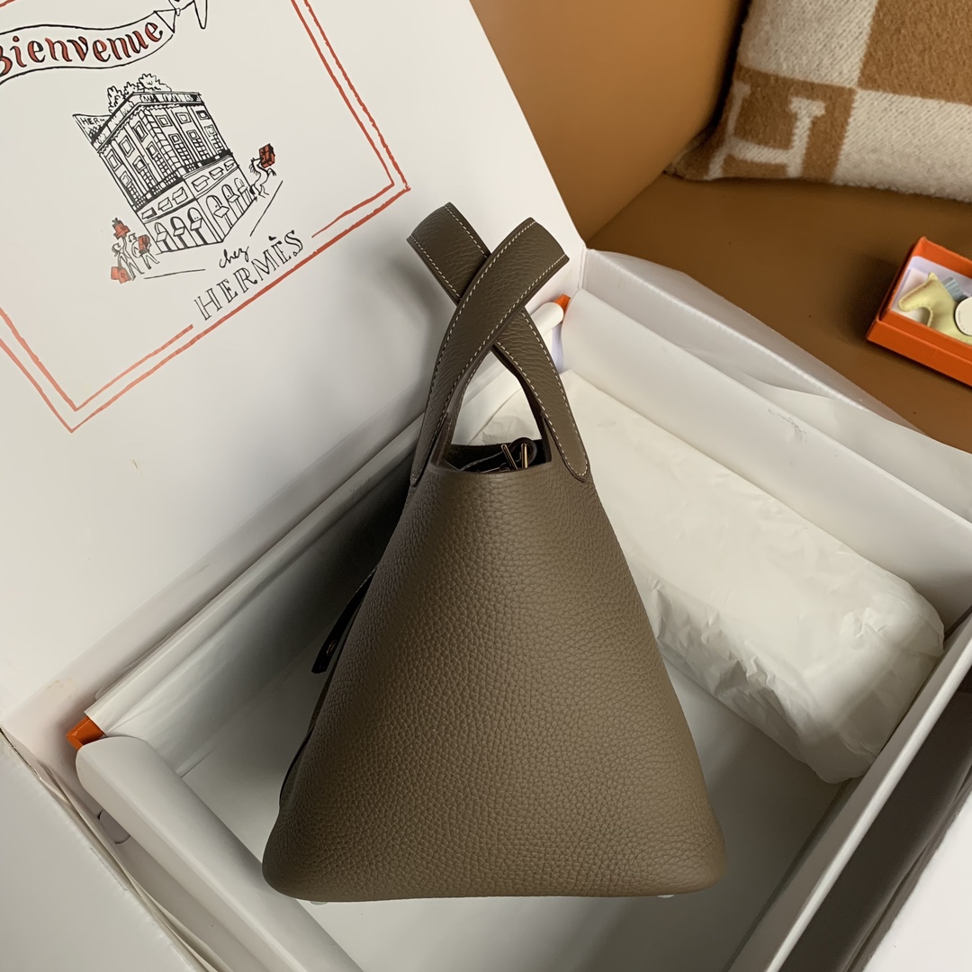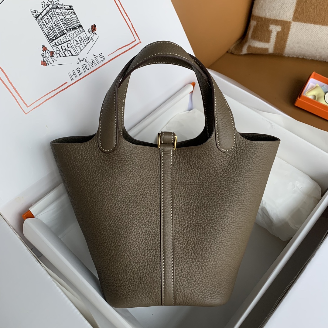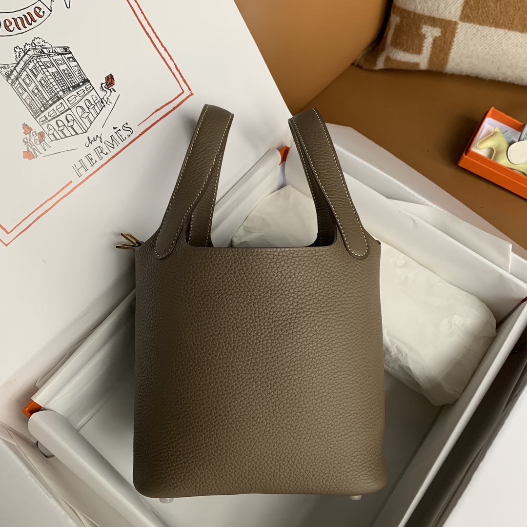 This is a replica ###Hermès Picotin Lock 18 Etoupe Clemence Gold Hardware. ###
