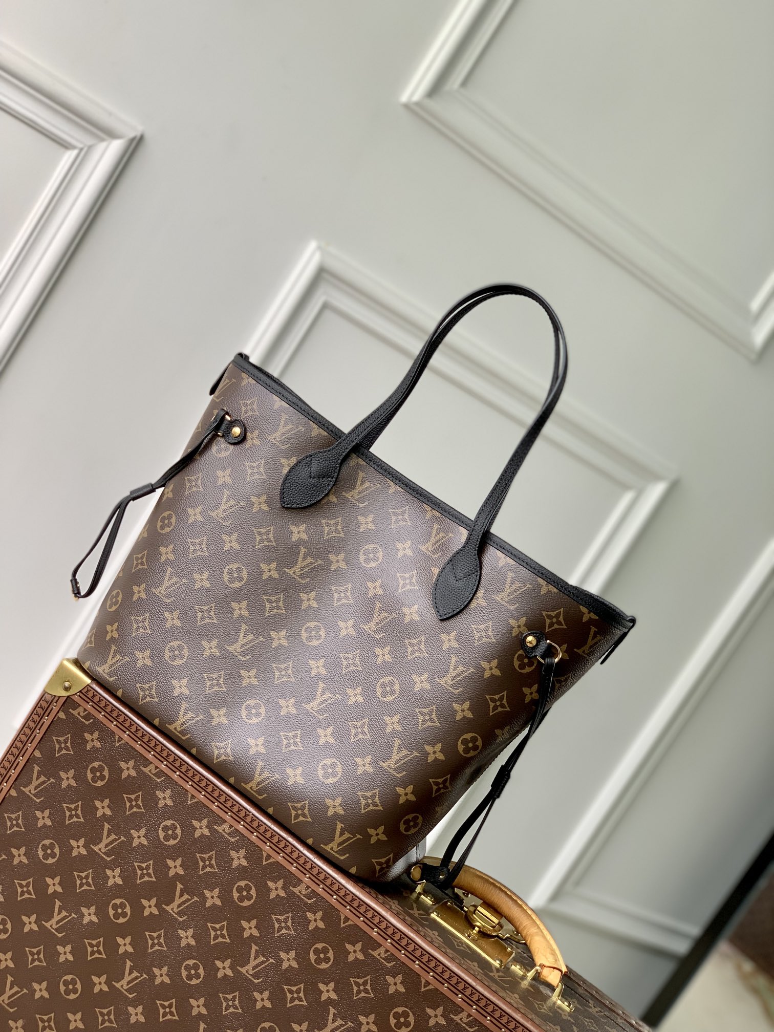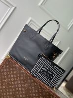 This is a replica LOUIS VUITTON M11946 Neverfull Bandoulière Inside Out MM. ,12.2 x 11 x 5.5 inches ,Black cowhide leather/Monogram Coated Canvas,Grained cowhide leather and coated canvas,Cowhide Leather trim,Gold-toned hardware,Removable zipped pouch,2 side laces,2 side hooks,Fits: 13-inch laptop, Smartphone, keys, Zippy wallet and earphones,Weight: 0.9 kg,Handle:Double