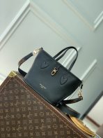 This is a replica LOUIS VUITTON M12099 Neverfull Bandoulière Inside Out BB. ,10.4 x 6.5 x 4.3 inches ,Black cowhide leather/Monogram Coated Canvas,Grained cowhide leather and coated canvas,Cowhide-leather trim,Gold-toned hardware,Removable zipped pouch,Hook closure,Fits: Smartphone, Rosalie Coin Purse, keys, earphones, lipstick, tissues,Weight: 0.5 kg,Strap:Removable, not adjustable,Strap drop:19.7 inches,Handle:Double