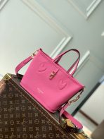 This is a replica LOUIS VUITTON M12106 Neverfull Bandoulière Inside Out BB. ,10.4 x 6.5 x 4.3 inches ,Rose Pondichery cowhide leather/Monogram Coated Canvas,Grained cowhide leather and coated canvas,Cowhide-leather trim,Gold-toned hardware,Removable zipped pouch,Hook closure,Fits: Smartphone, Rosalie Coin Purse, keys, earphones, lipstick, tissues,Weight: 0.5 kg,Strap:Removable, not adjustable,Strap drop:19.7 inches,Handle:Double