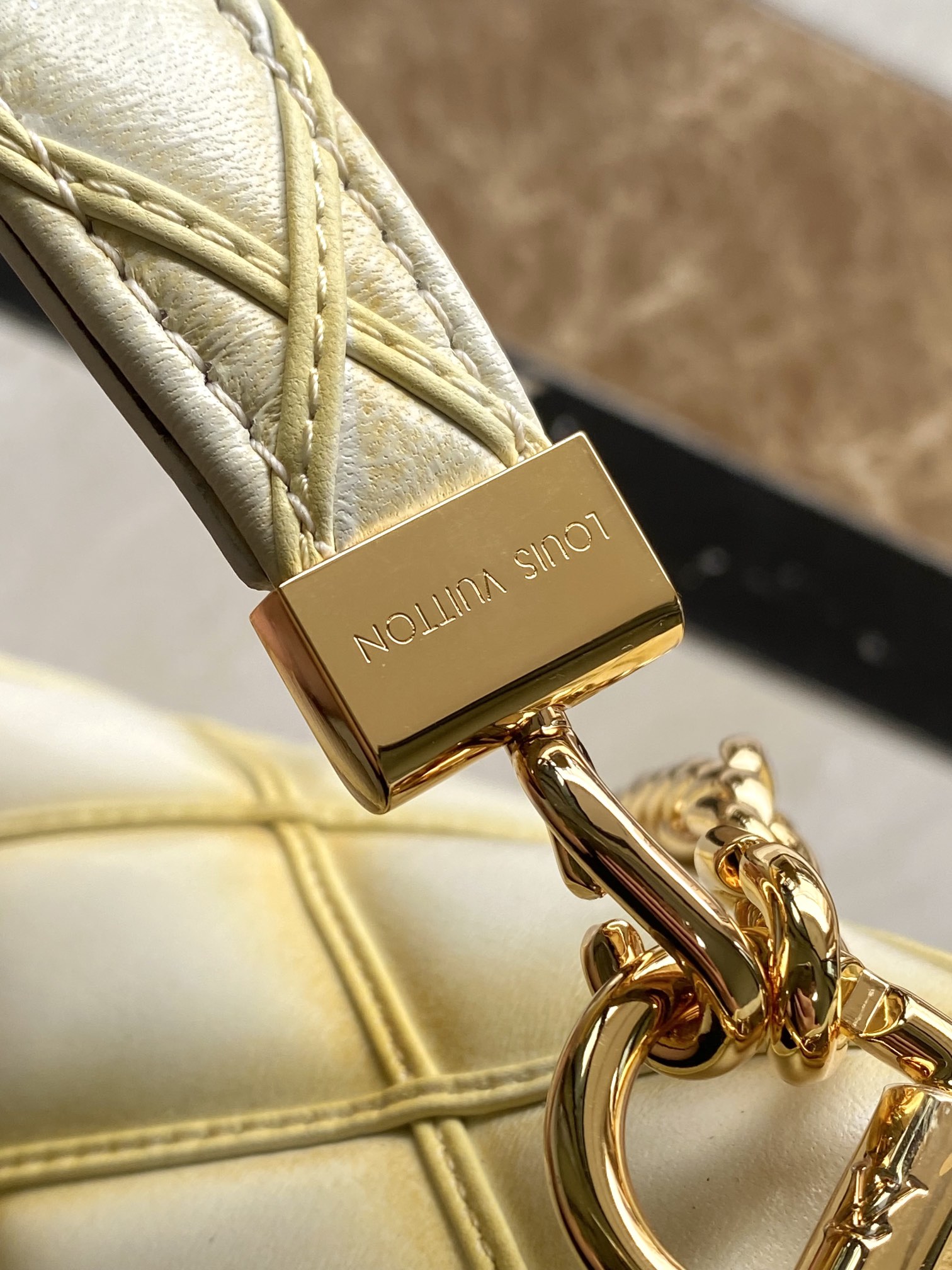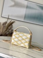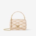 This is a replica LOUIS VUITTON M12338 GO-14 PM. ,7.9 x 5.5 x 3.5 inches ,Vanilla,Lambskin leather,Lambskin-leather trim,Cowhide-leather lining,Gold-toned hardware,Twist lock,Double inside back flat pocket with mirror,Fits: 6.7-inches smartphone, Rosalie Coin Purse, earphones, lipstick, tissues, keys, sunglasses,Chain:Sliding, removable,Handle:Single, removable