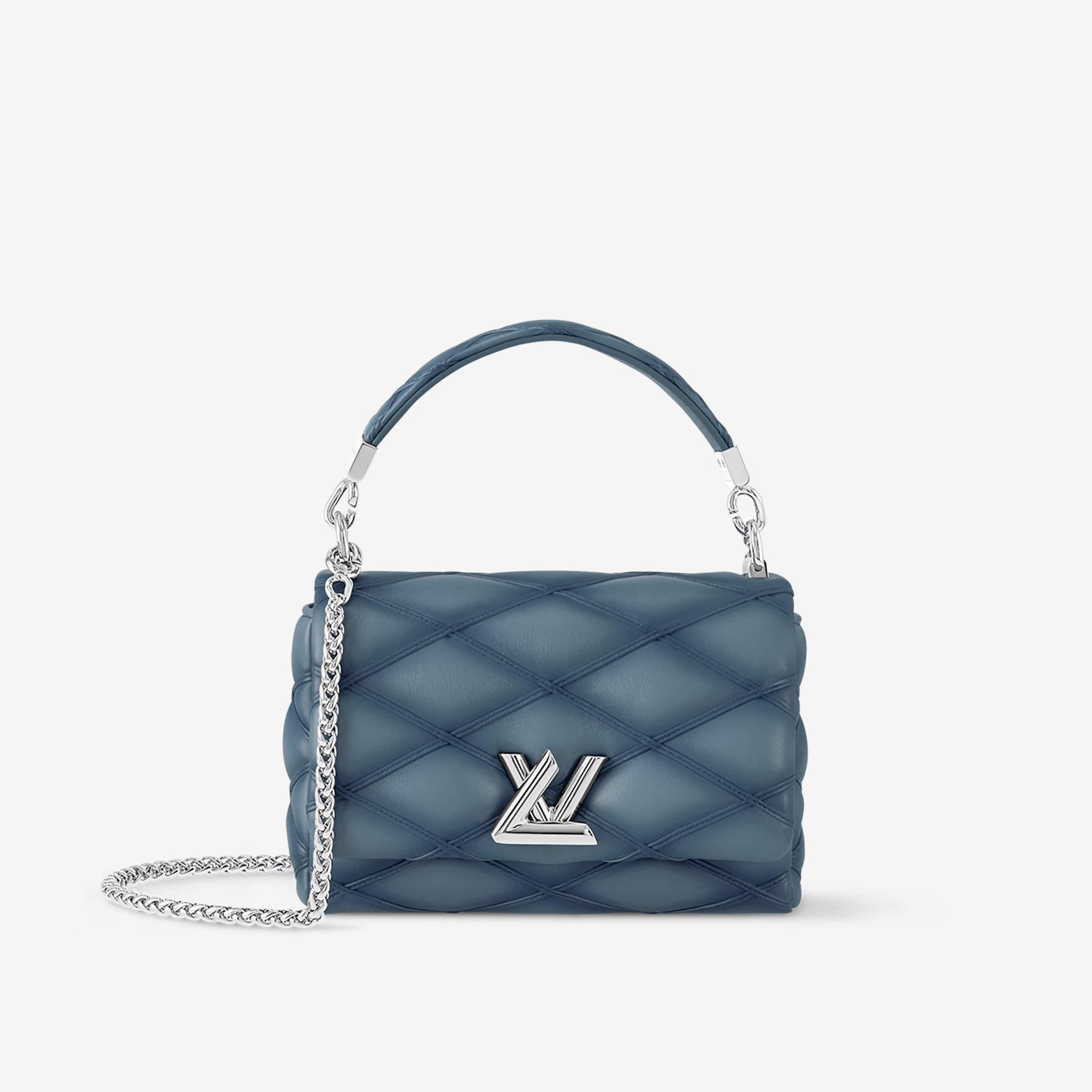 This is a replica LOUIS VUITTON M12434 GO-14 PM. ,7.9 x 5.5 x 3.5 inches ,Denim blue,Lambskin leather,Lambskin-leather trim,Cowhide-leather lining,Gold-toned hardware,Twist lock,Double inside back flat pocket with mirror,Fits: 6.7-inches smartphone, Rosalie Coin Purse, earphones, lipstick, tissues, keys, sunglasses,Chain:Sliding, removable,Handle:Single, removable
