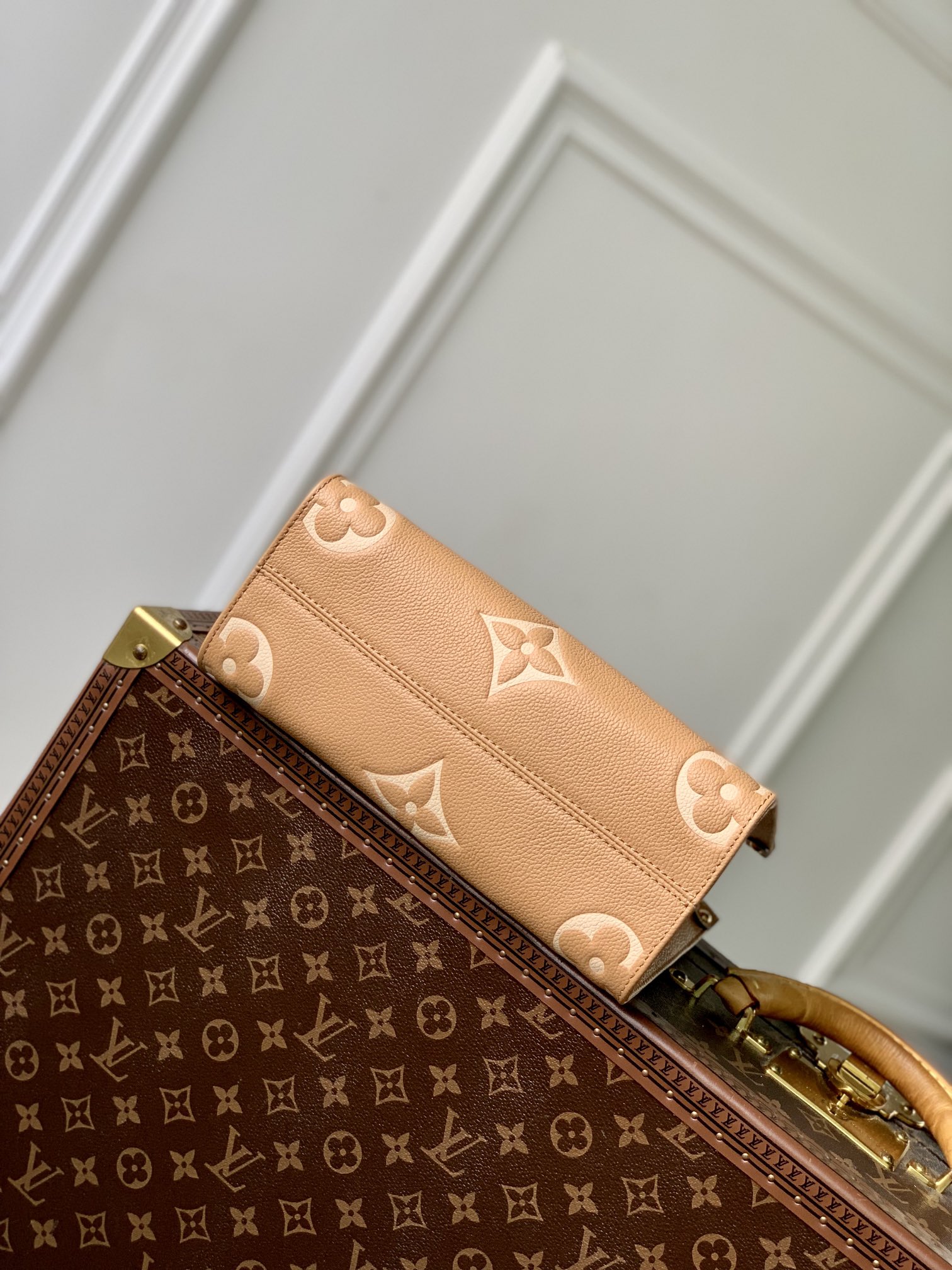 This is a replica LOUIS VUITTON M12513 OnTheGo PM. ,9.8 x 7.5 x 4.5 inches ,Arizona / Cream,Embossed grained cowhide leather,Grained cowhide leather trim,Microfiber lining,Gold-color hardware,Inside flat zipped pocket,Inside double pocket,4 riveted corner tabs,Fits: 13-inch laptop, smartphone, keys, Zippy wallet and earphones,Weight: 0.6 kg,Strap:Removable, adjustable,Strap drop:18.9 inches,Strap drop max:20.5 inches,Handle:Double