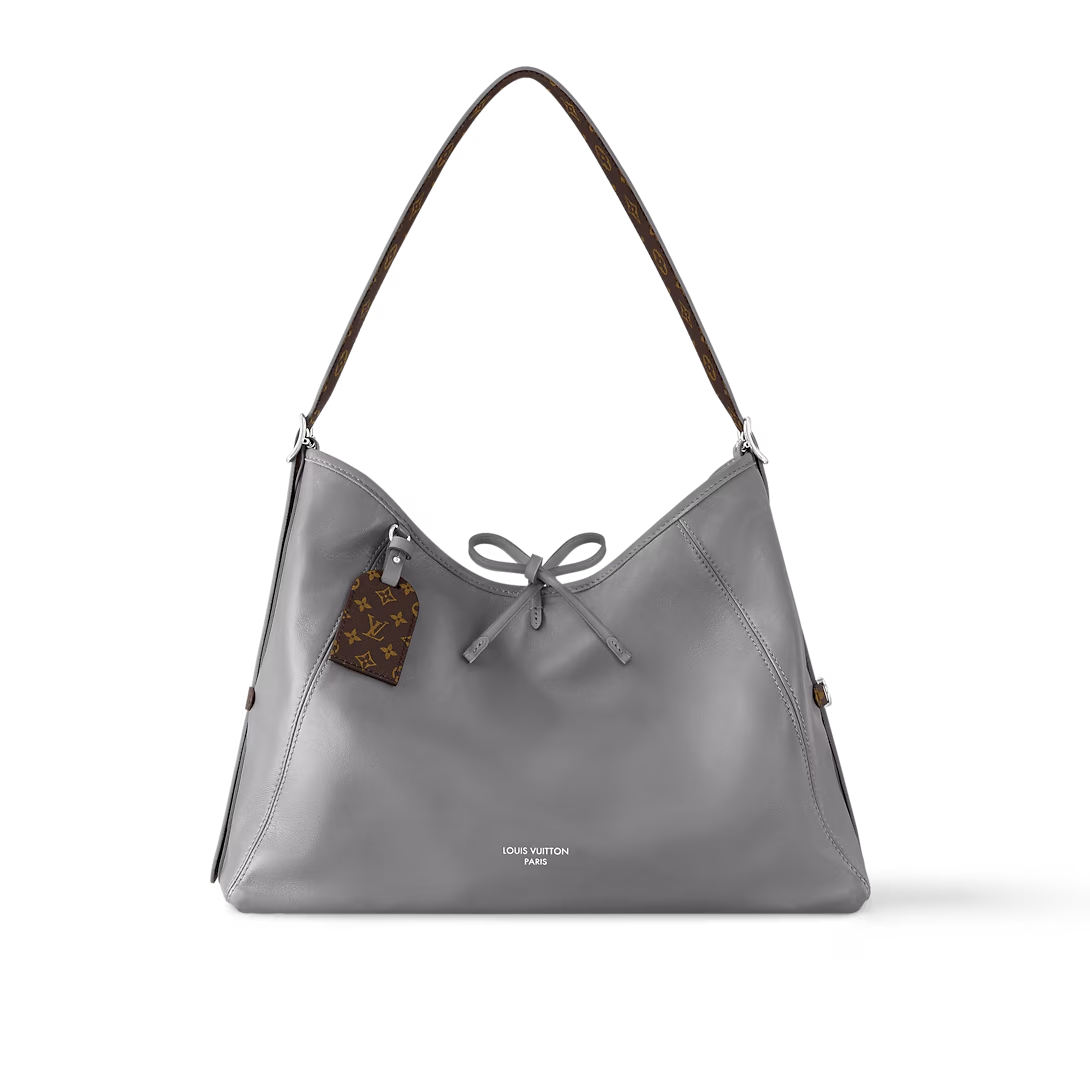 This is a replica LOUIS VUITTON M12583 CarryAll Vibe MM. ,39 x 30 x 15 cm ,Trianon Grey,Lambskin leather,Cowhide leather trim,Microfibre lining,Silver-colour hardware,Leather lace closure,Zipped inside pocket,Leather lace closure,Strap: Removable, adjustable,Strap Drop: 32.0 cm,Strap Drop Max: 56.0 cm,Handle: Single, removable